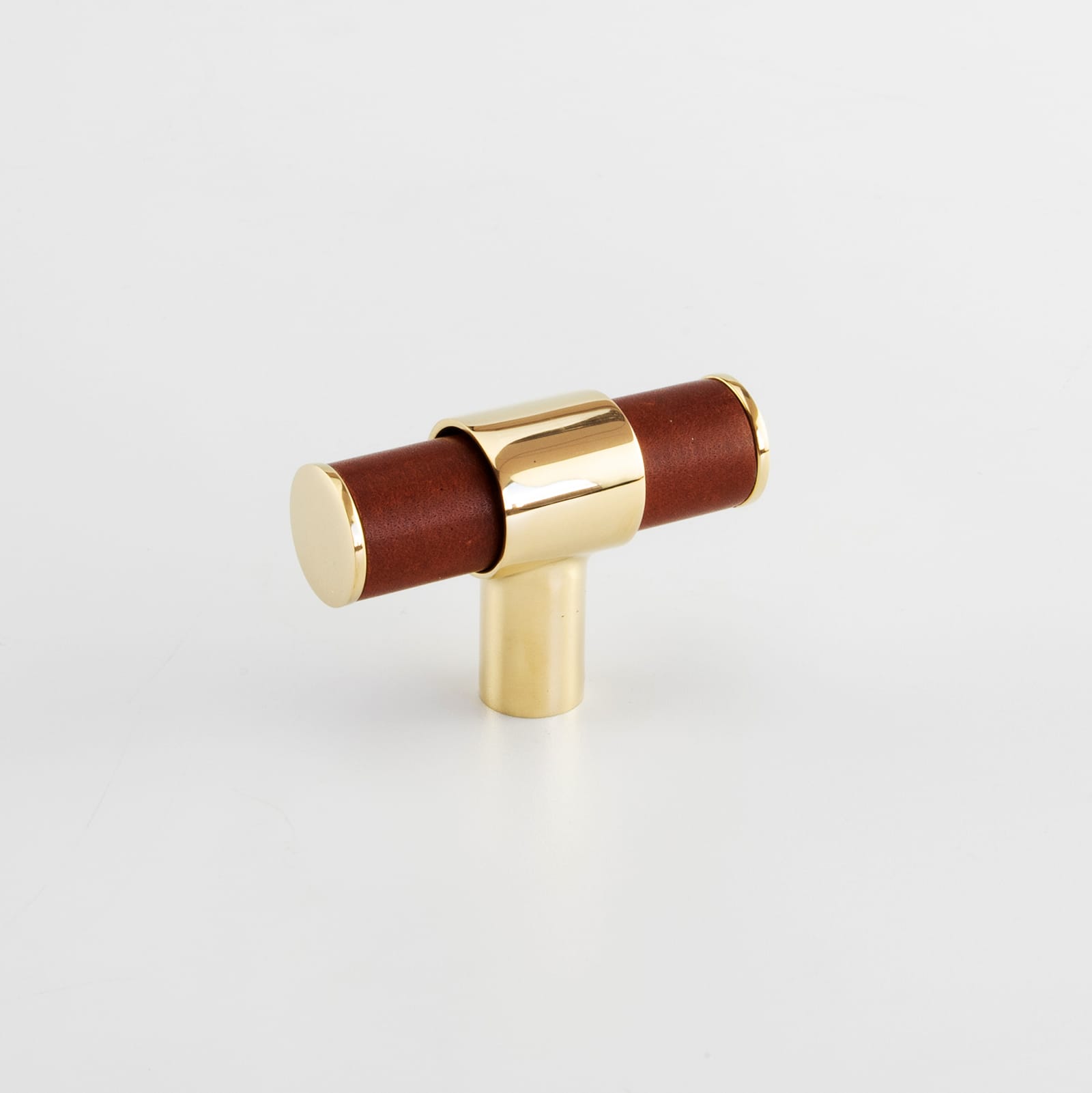 Cabinet Knob, Solid Brass Material with Hand Stitched Leather