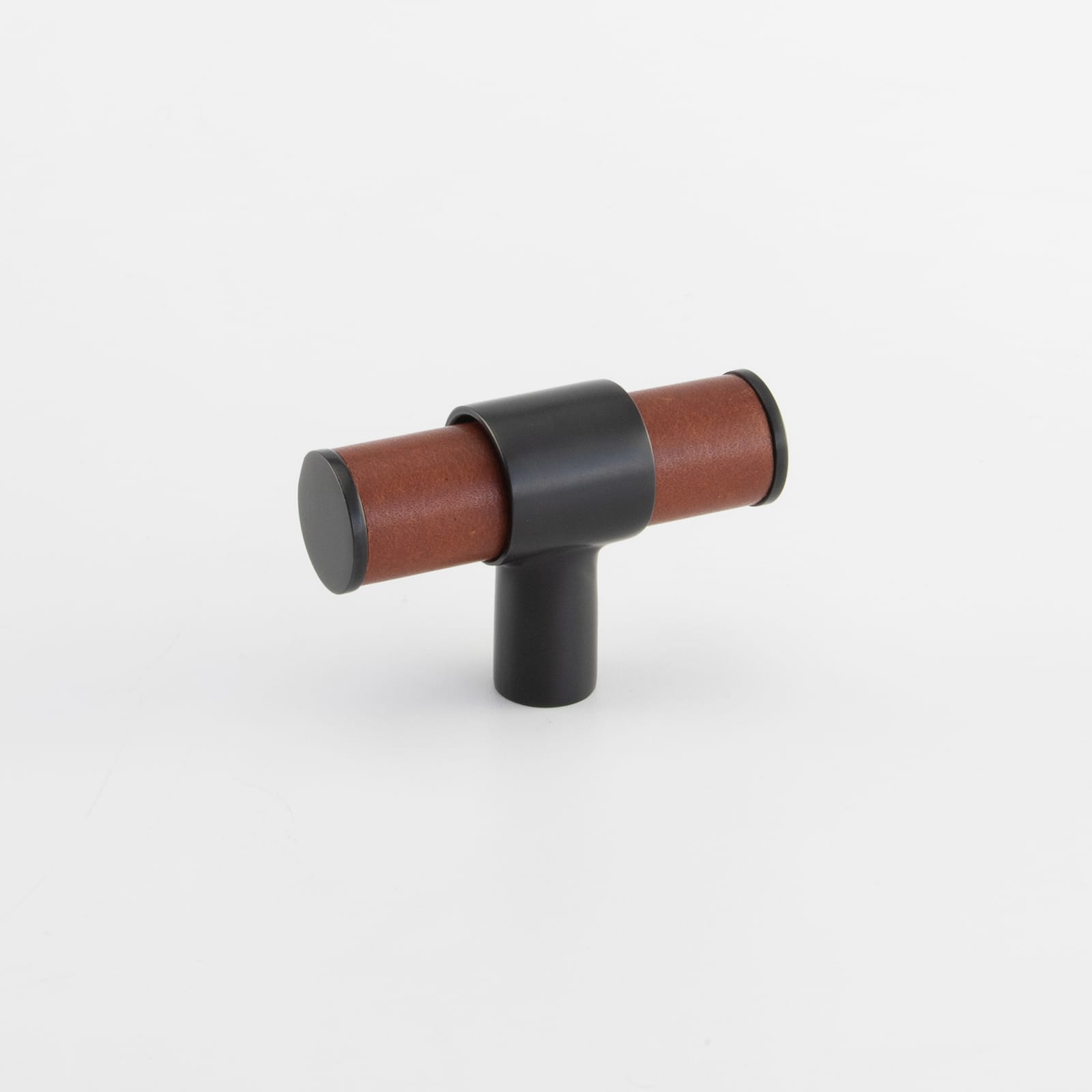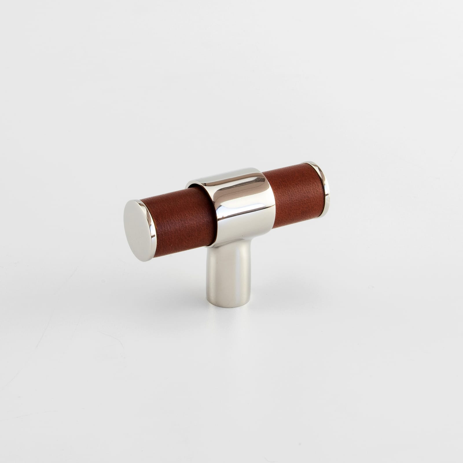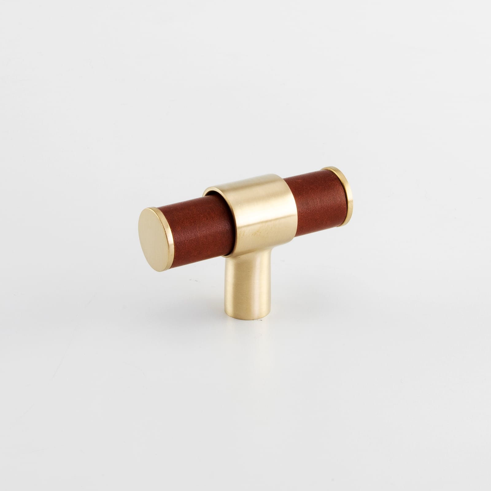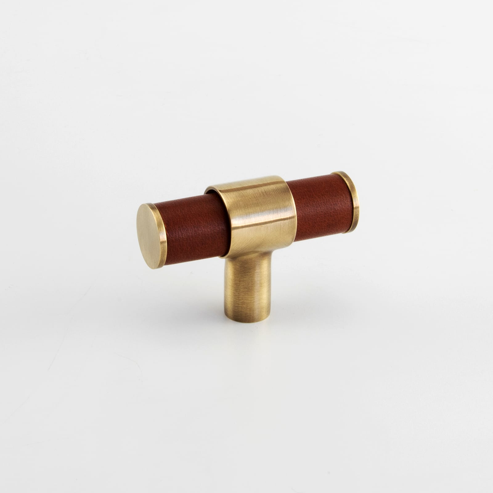 T-Bar Cabinet Handle, Solid Brass Material with Hand Stitched Leather