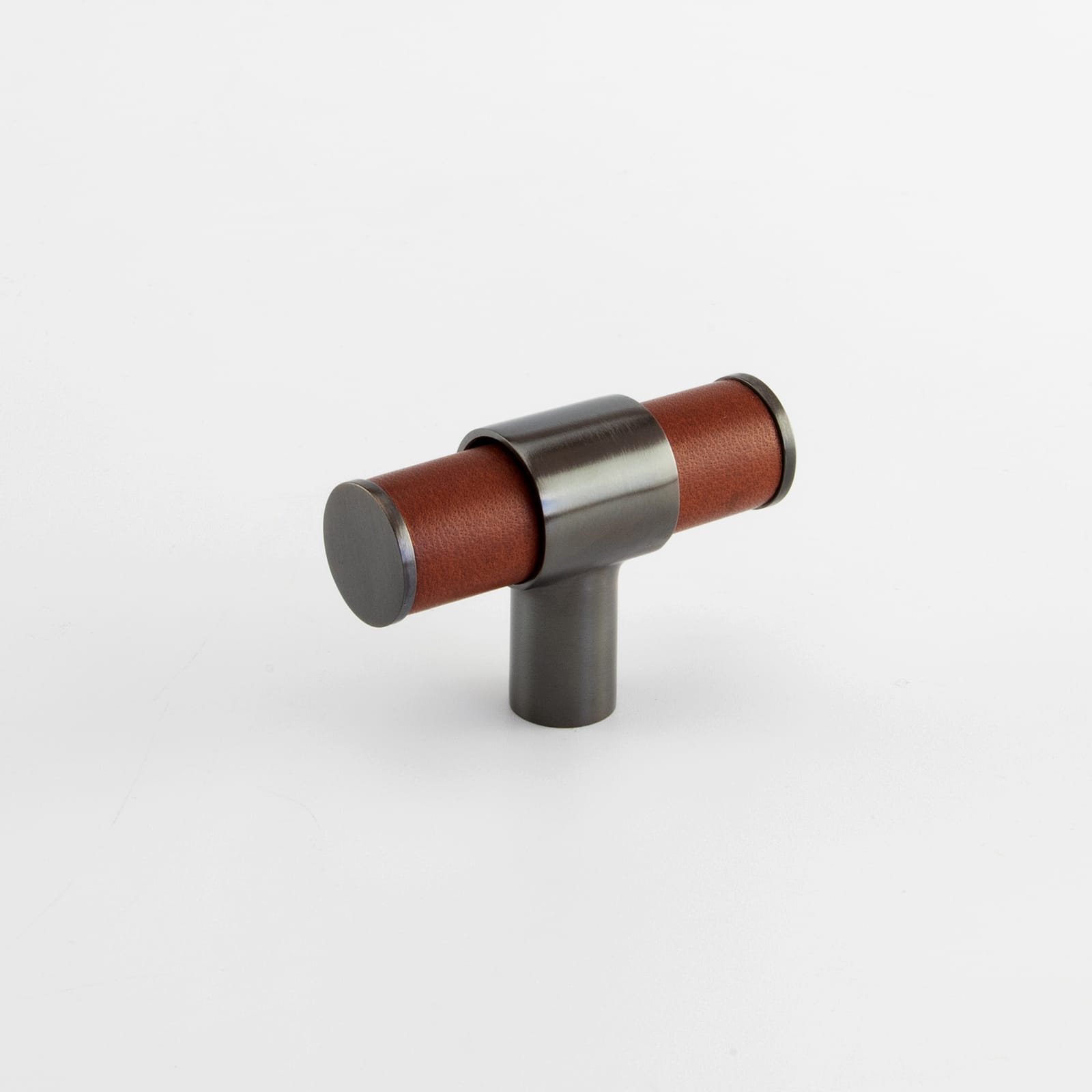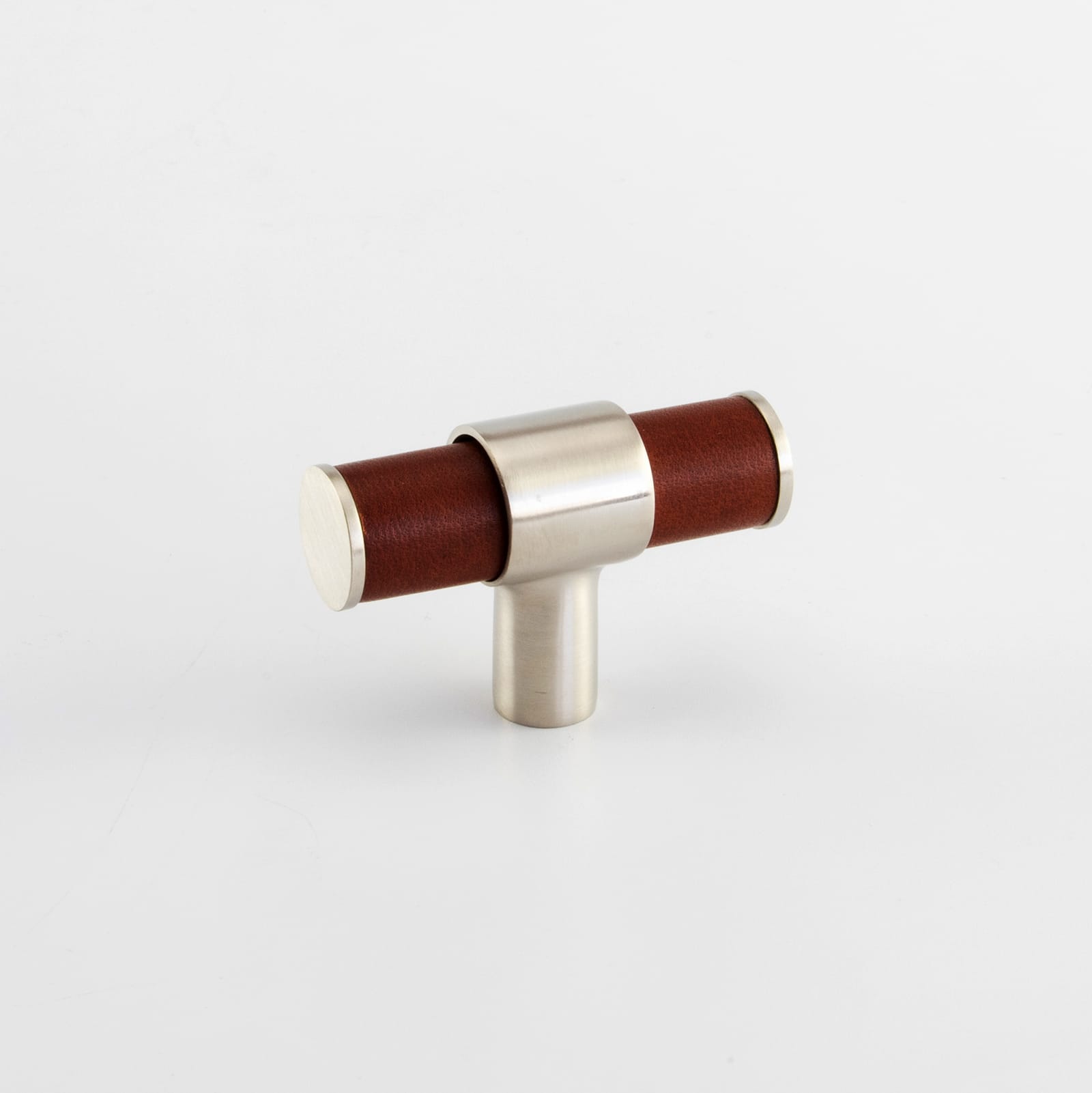 T-Bar Cabinet Handle, Solid Brass Material with Hand Stitched Leather