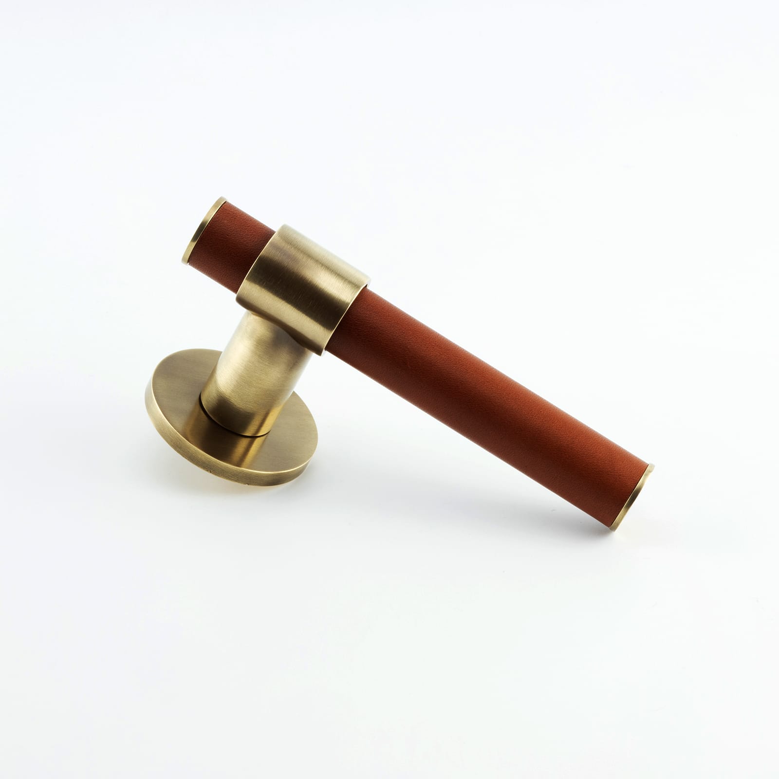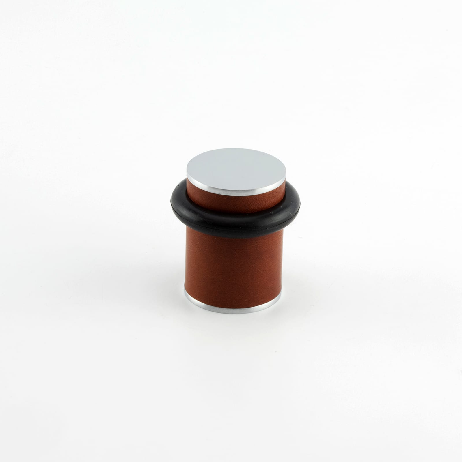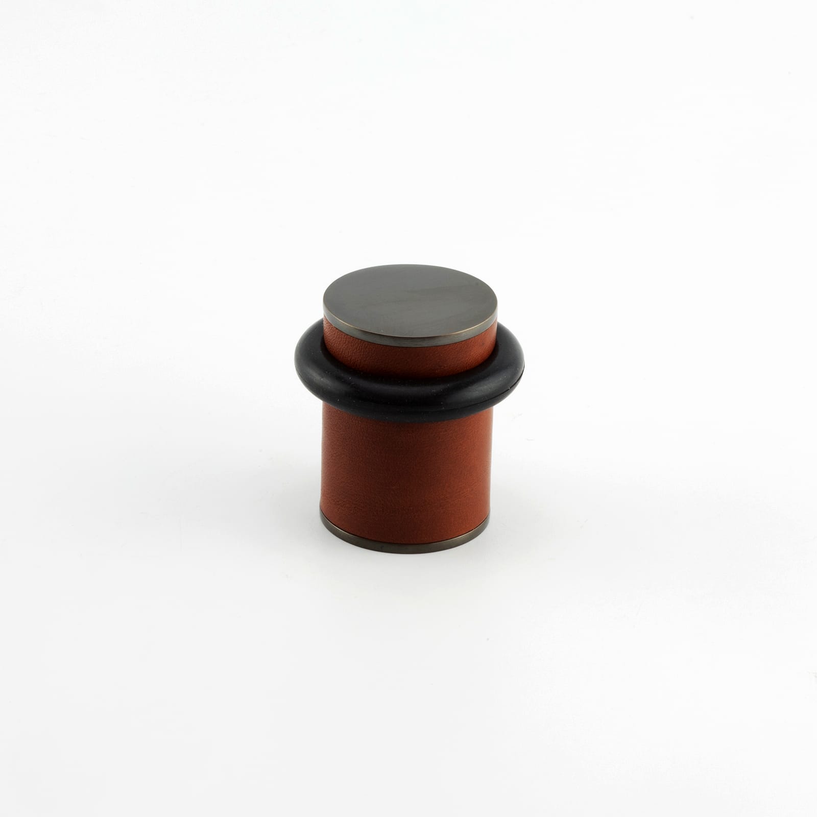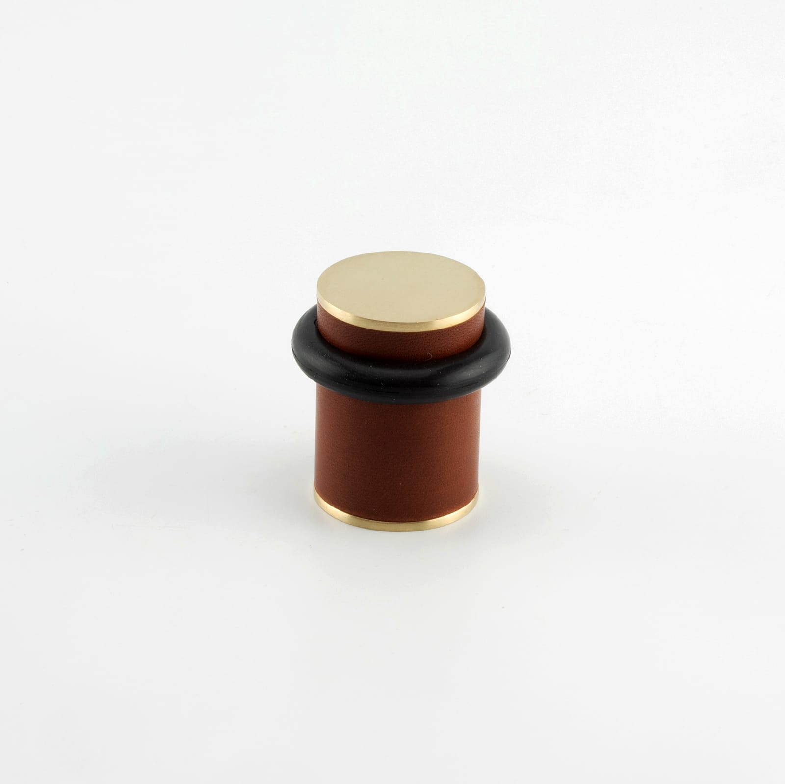 Floor Door Stop with Hand Stitched Leather Detail, Solid Brass Material