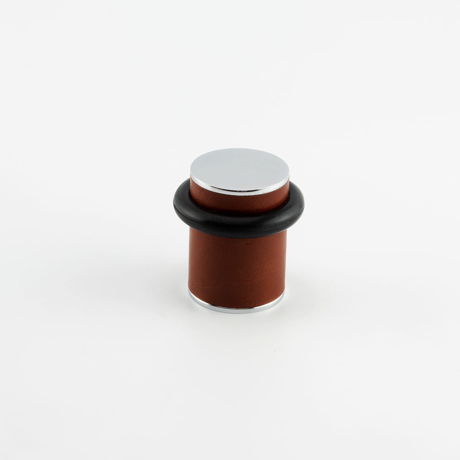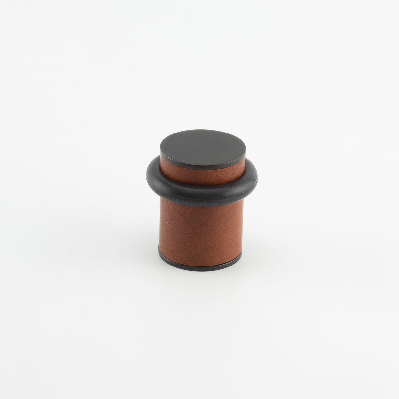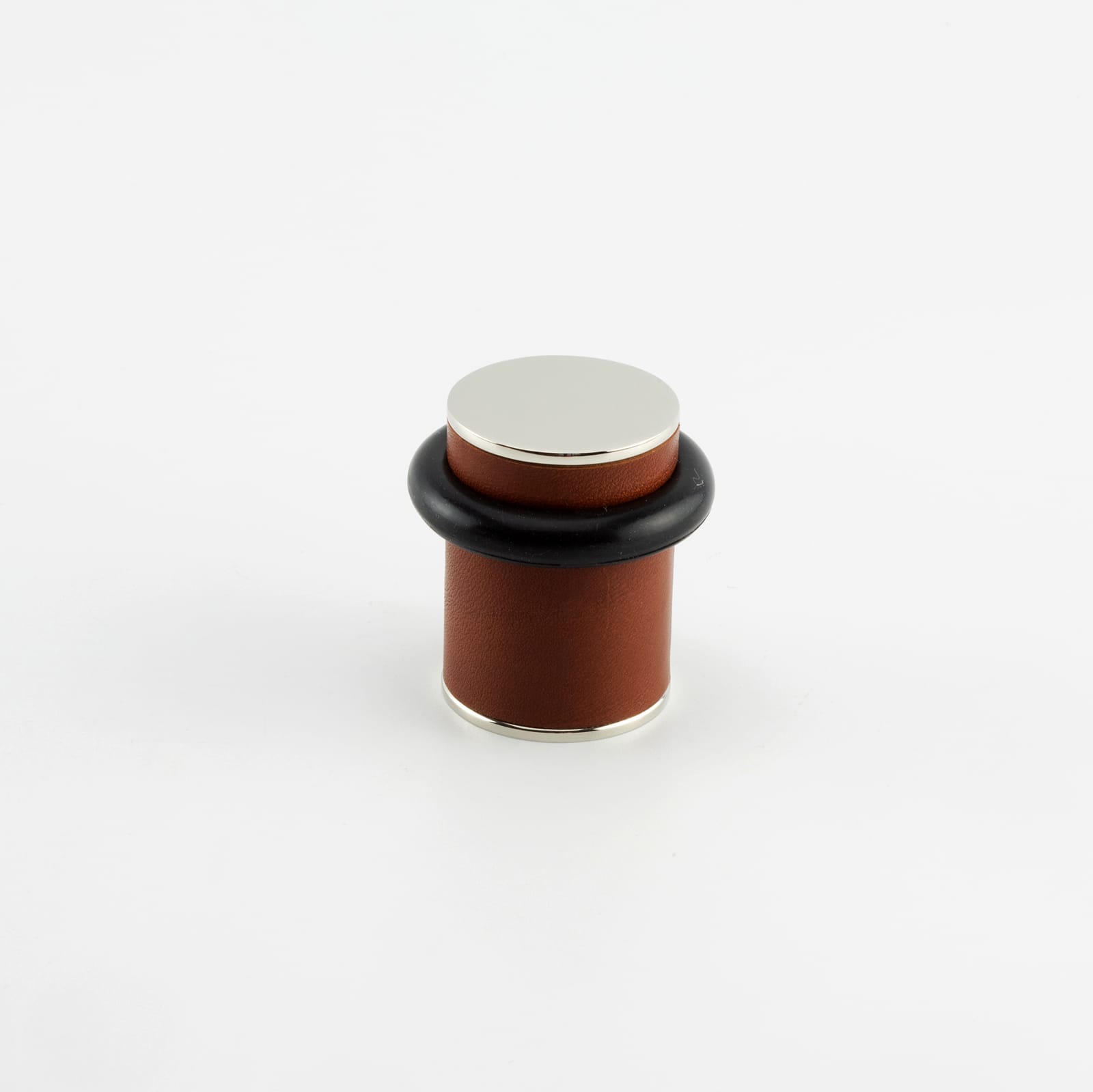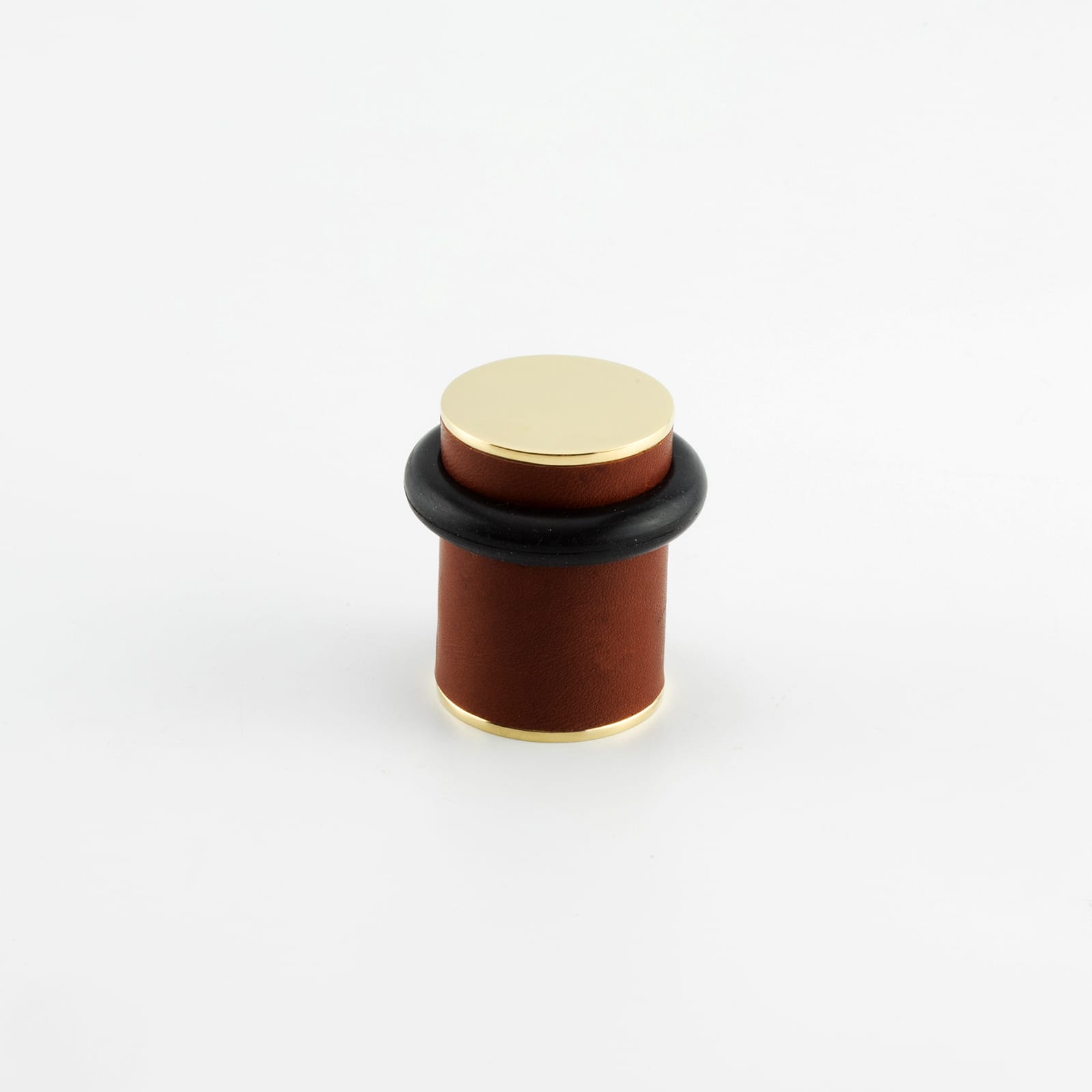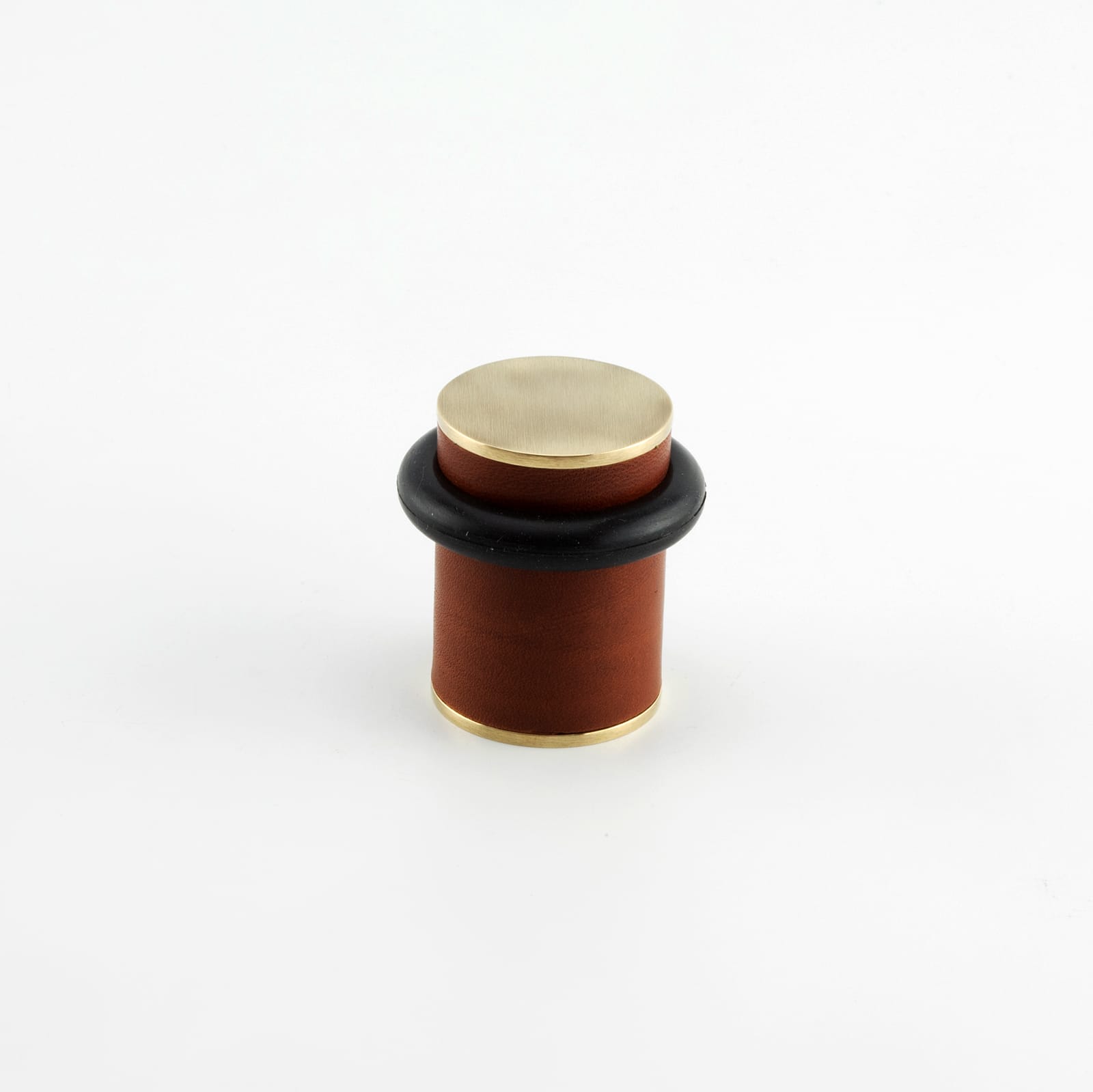 Floor Door Stop with Hand Stitched Leather Detail, Solid Brass Material