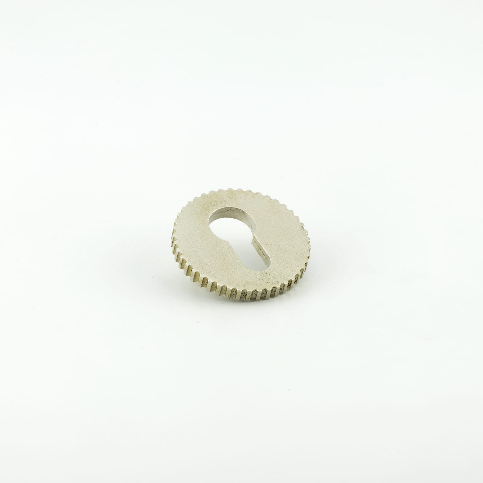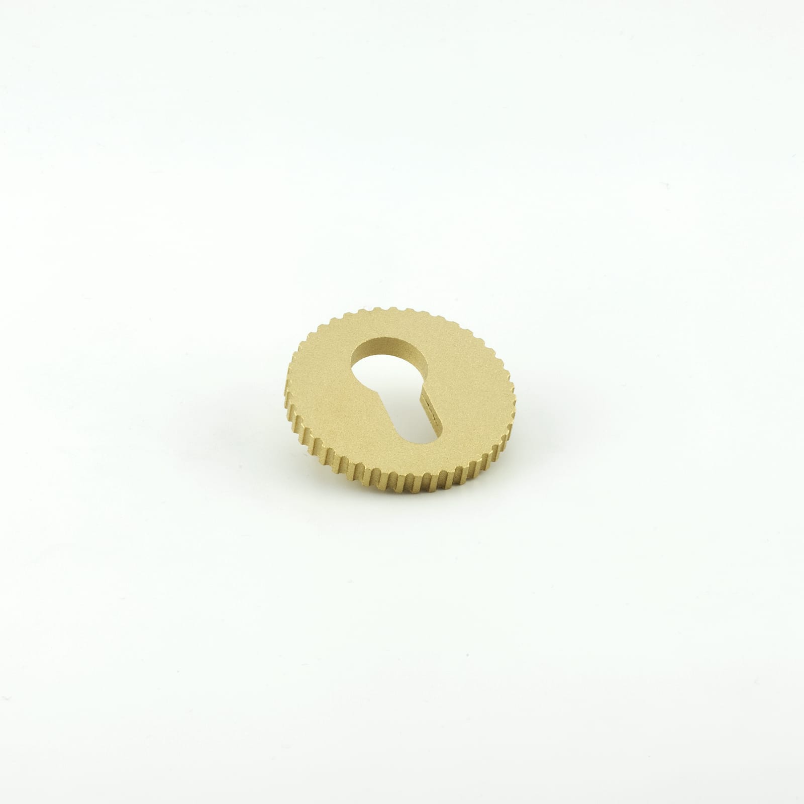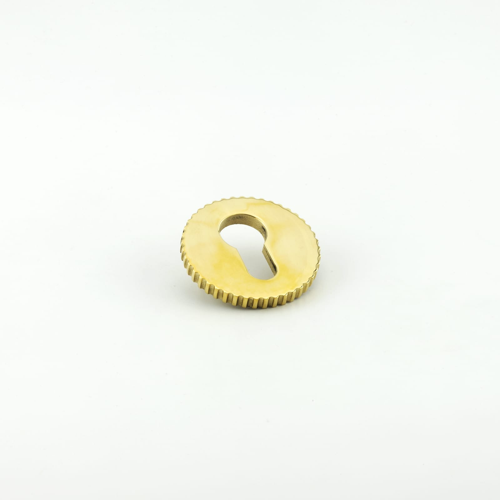 Description Euro escutcheon with a grooved edge, pin fixed, solid brass material