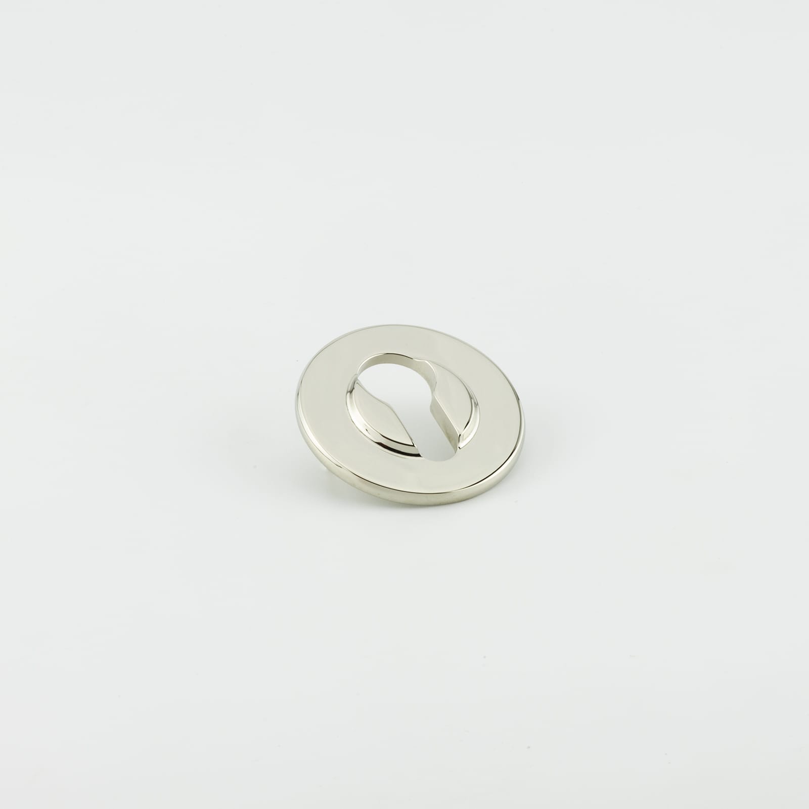 Description Euro escutcheon with a large chamfered stepped edge detail, Pin fixed, Solid brass material