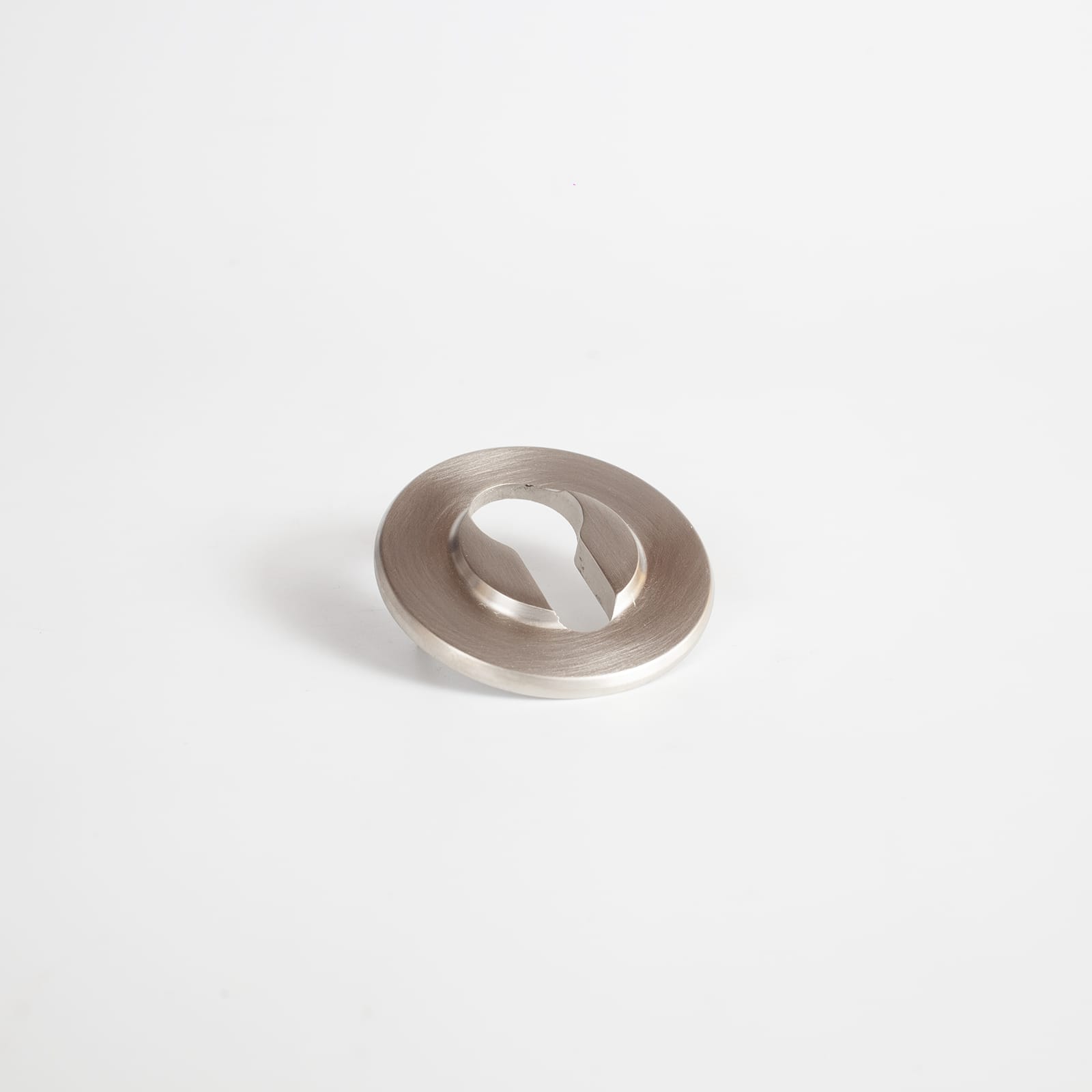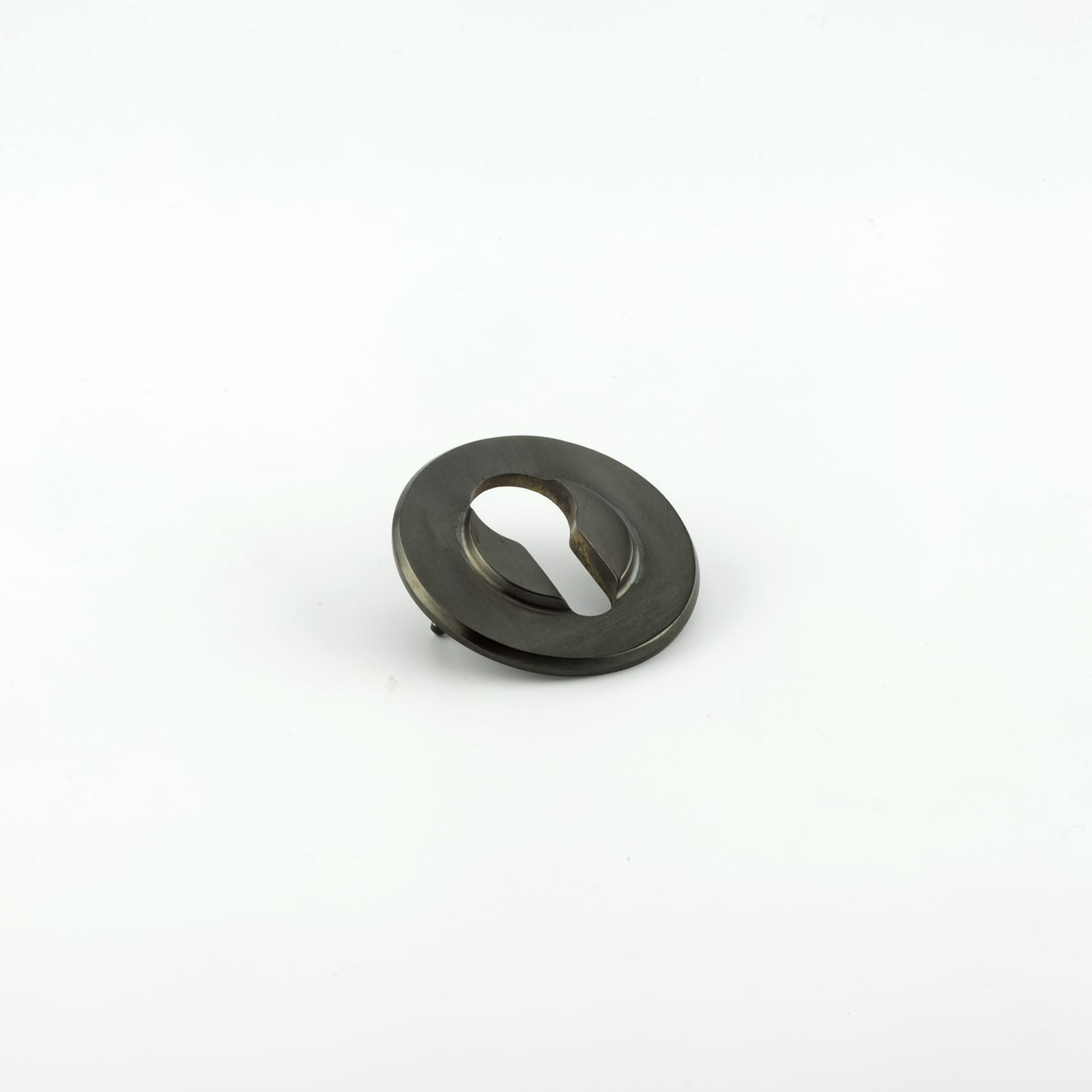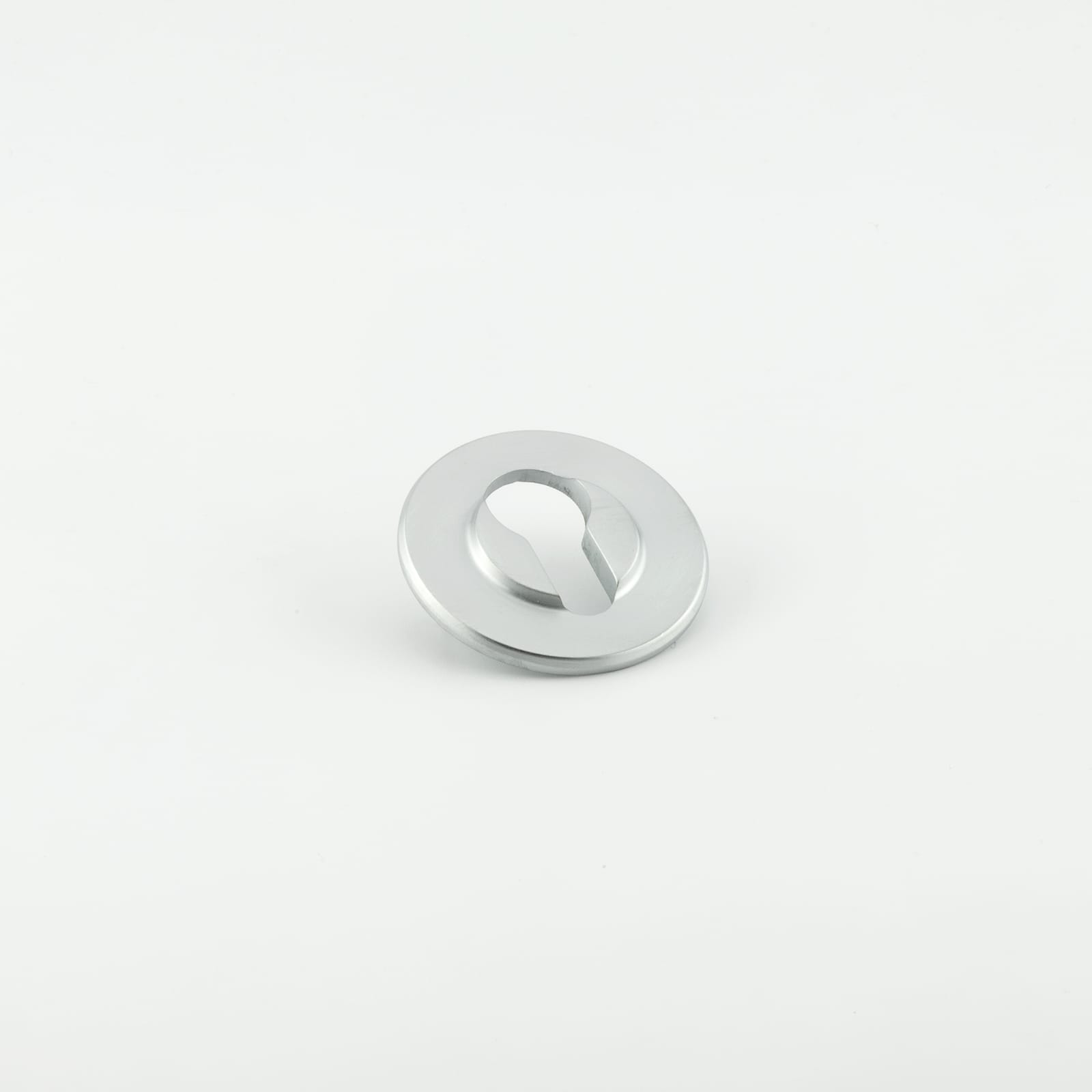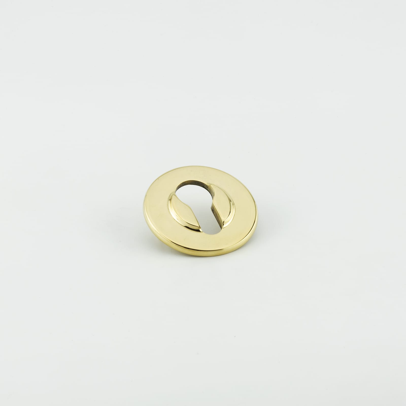 Description Euro escutcheon with a large chamfered stepped edge detail, Pin fixed, Solid brass material
