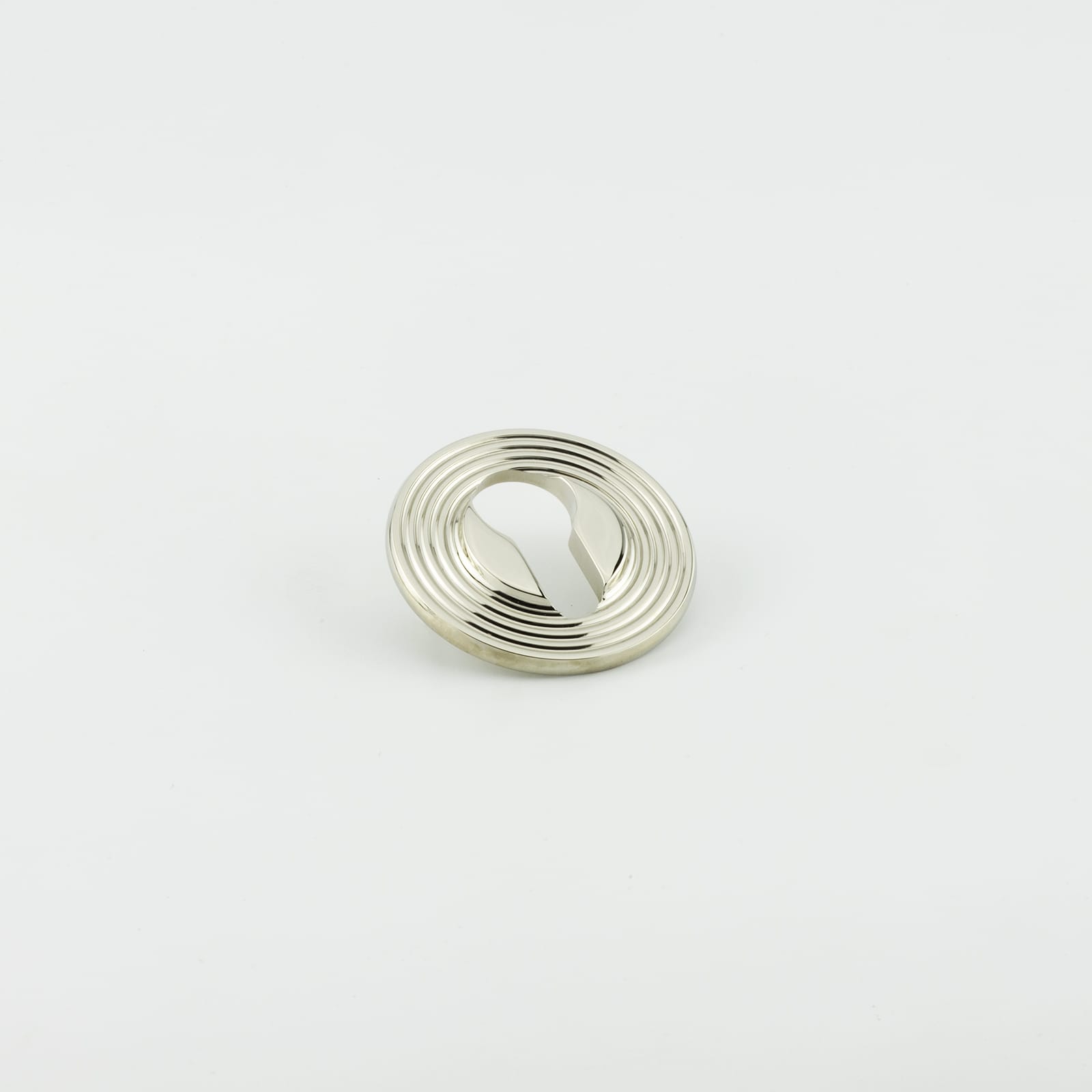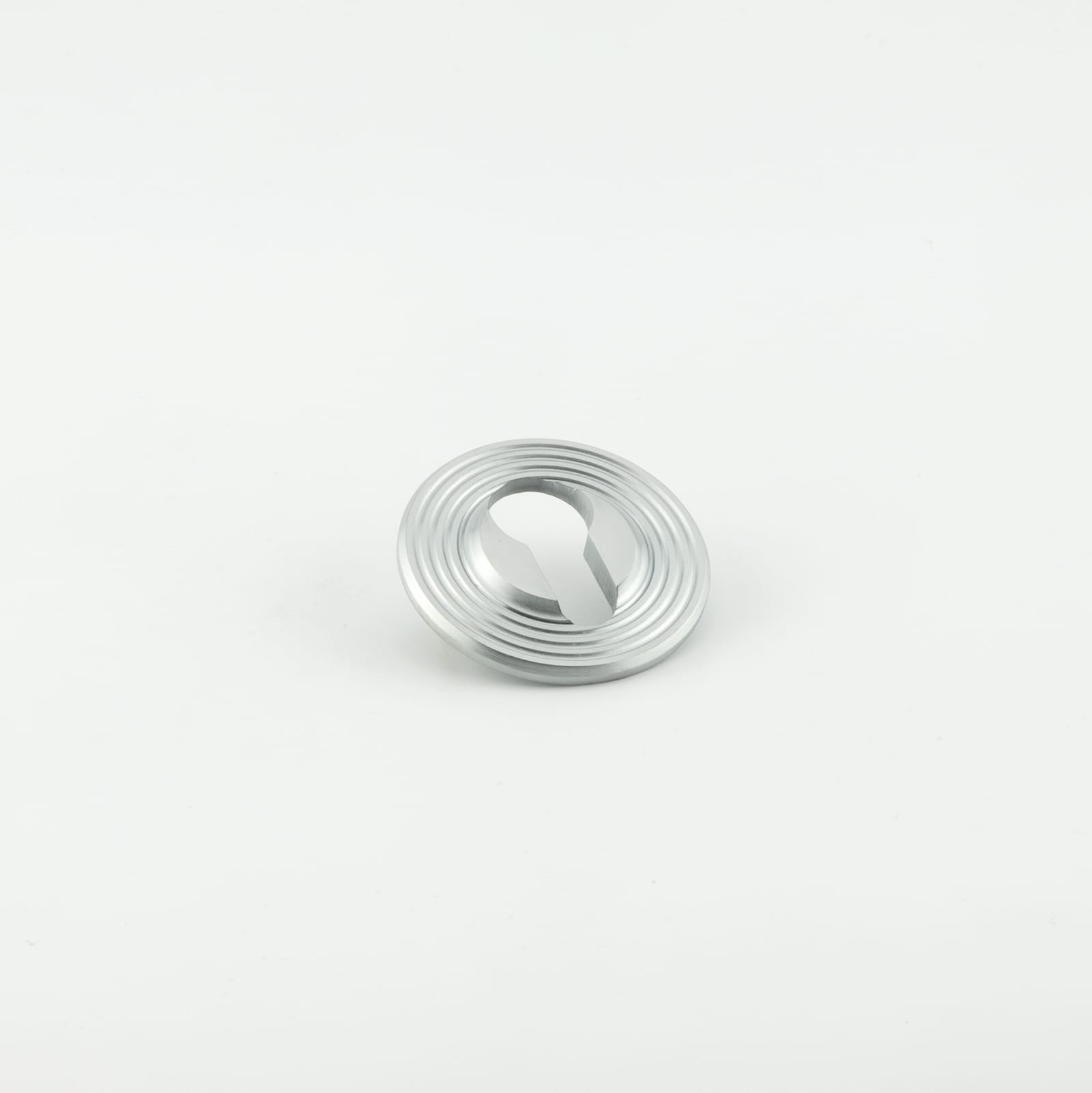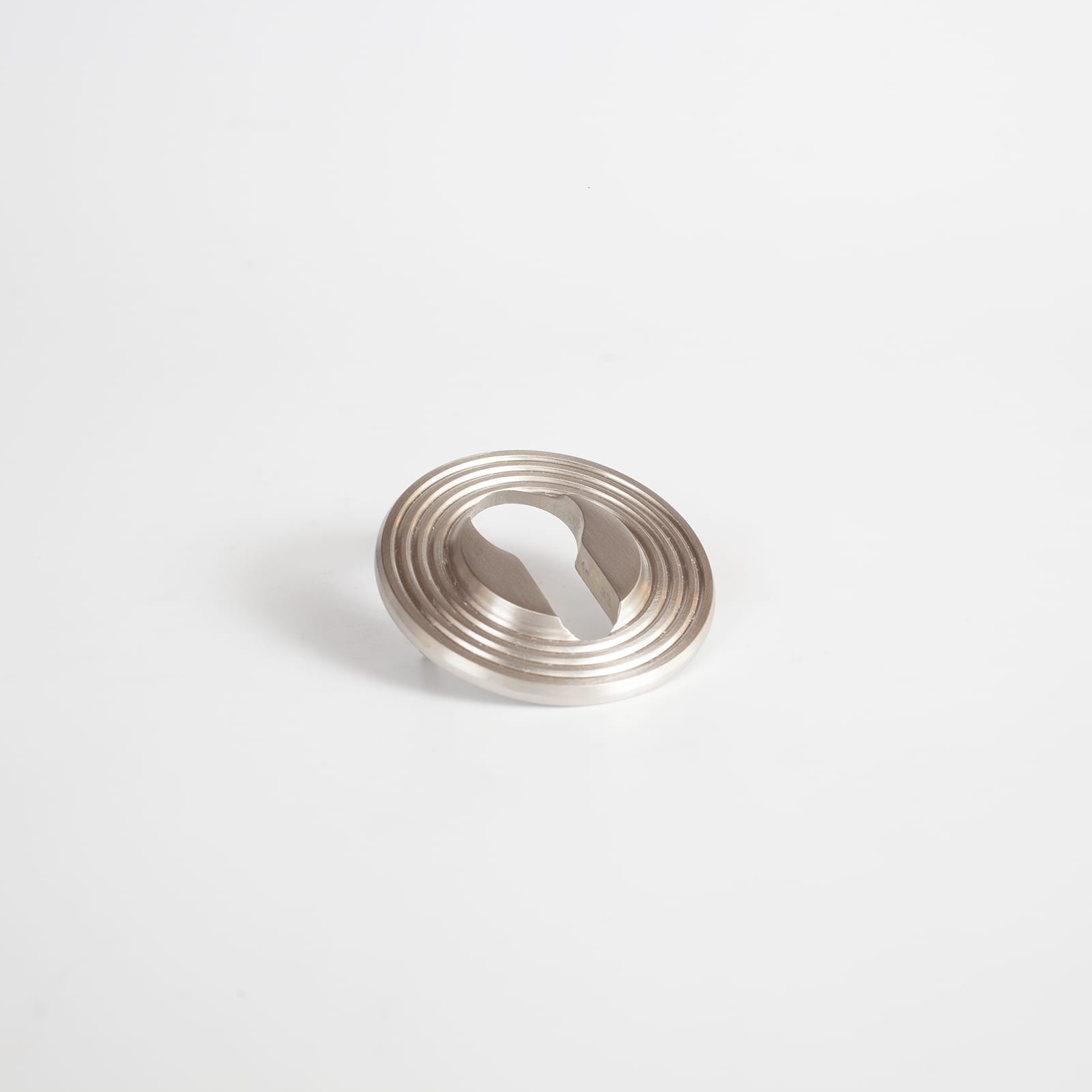 Description Euro escutcheon with a large stepped edge with reeded detail, Pin fixed, Solid brass material