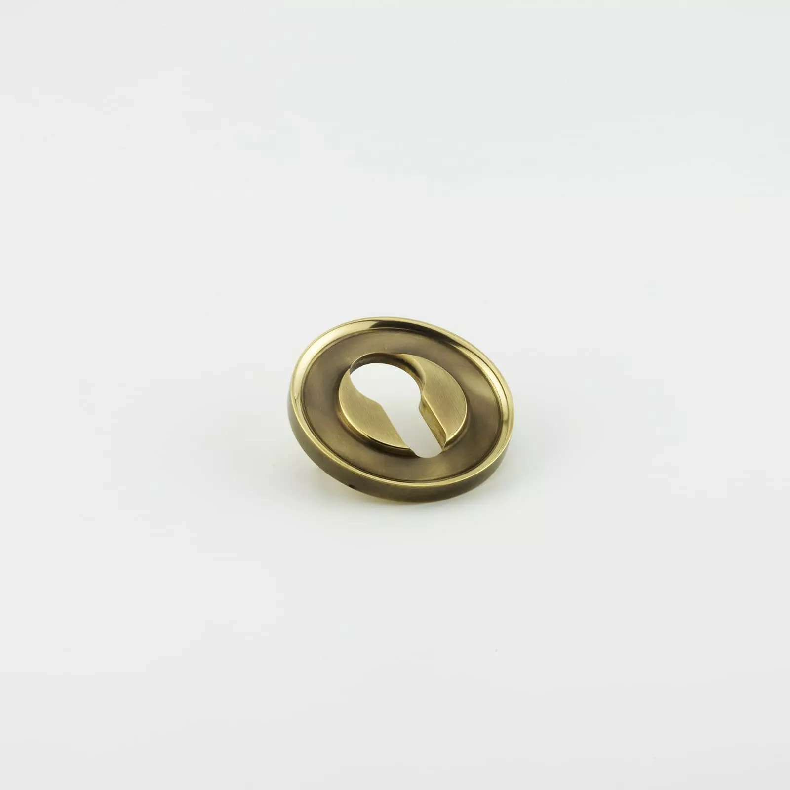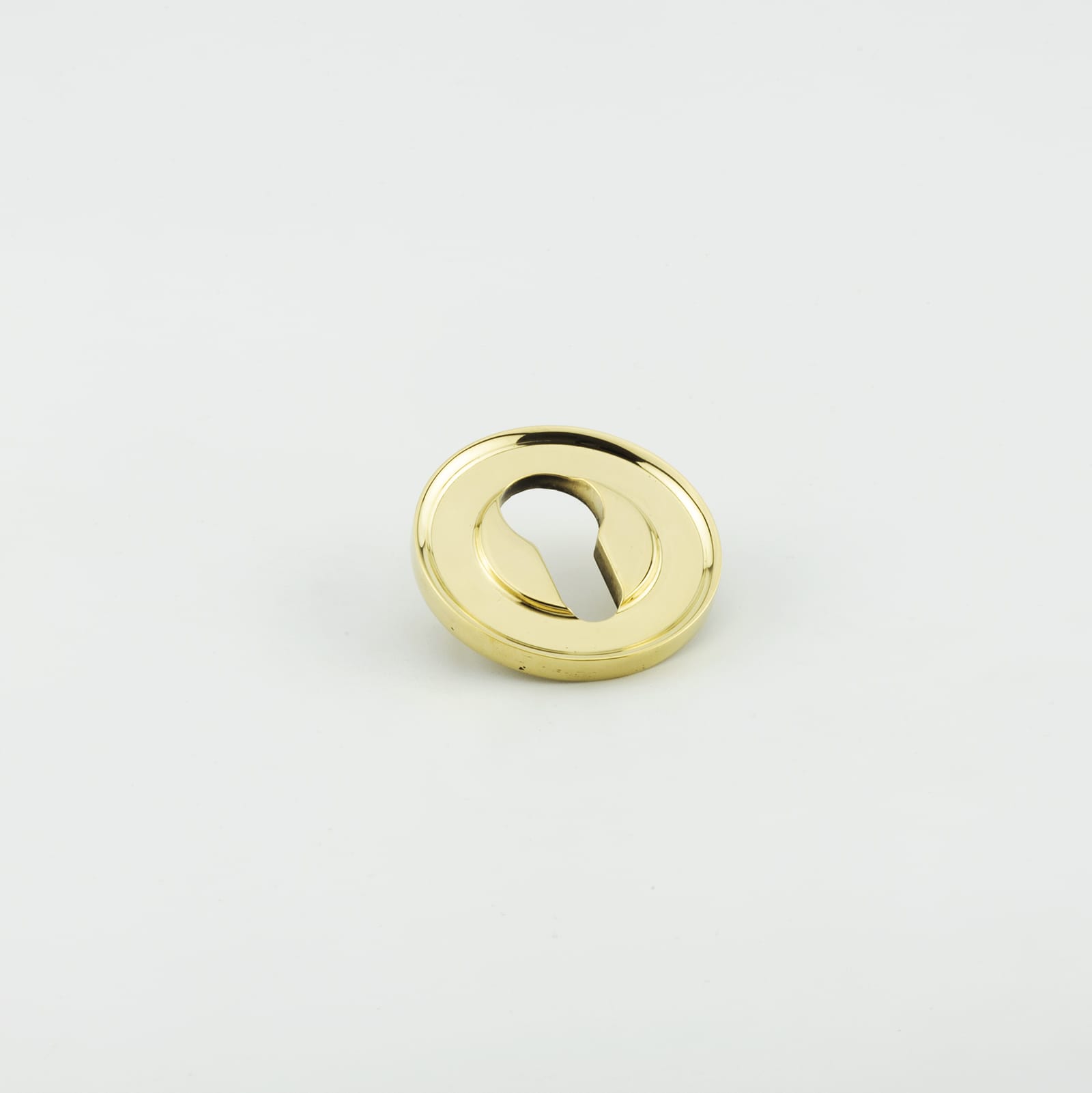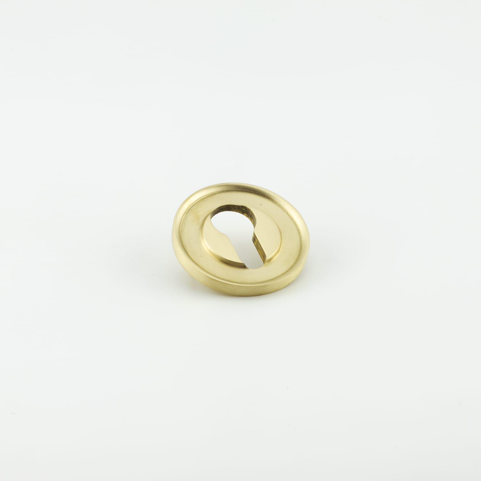 Description Euro escutcheon with a large stepped face with a curved lip detail, Pin fixed, Solid brass material