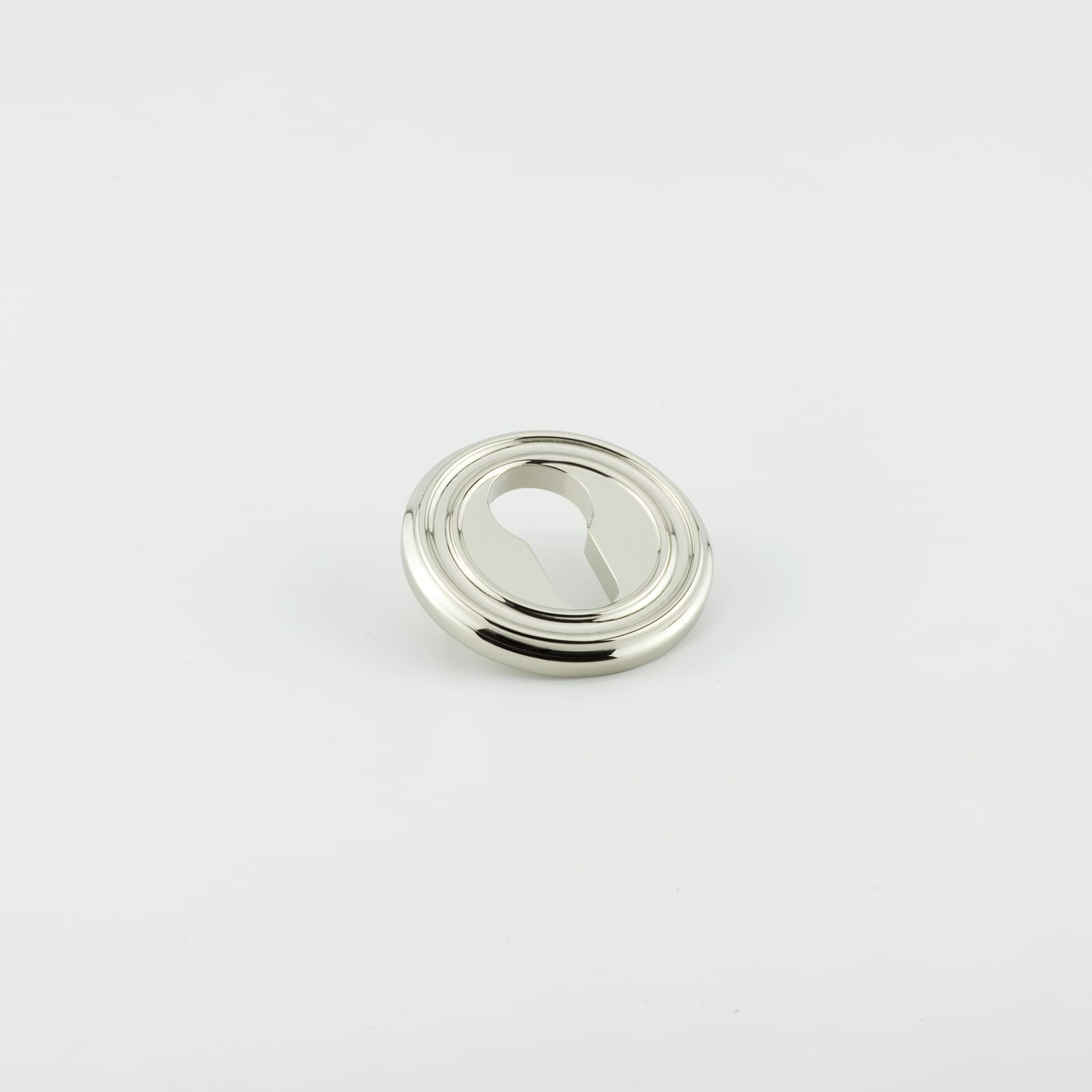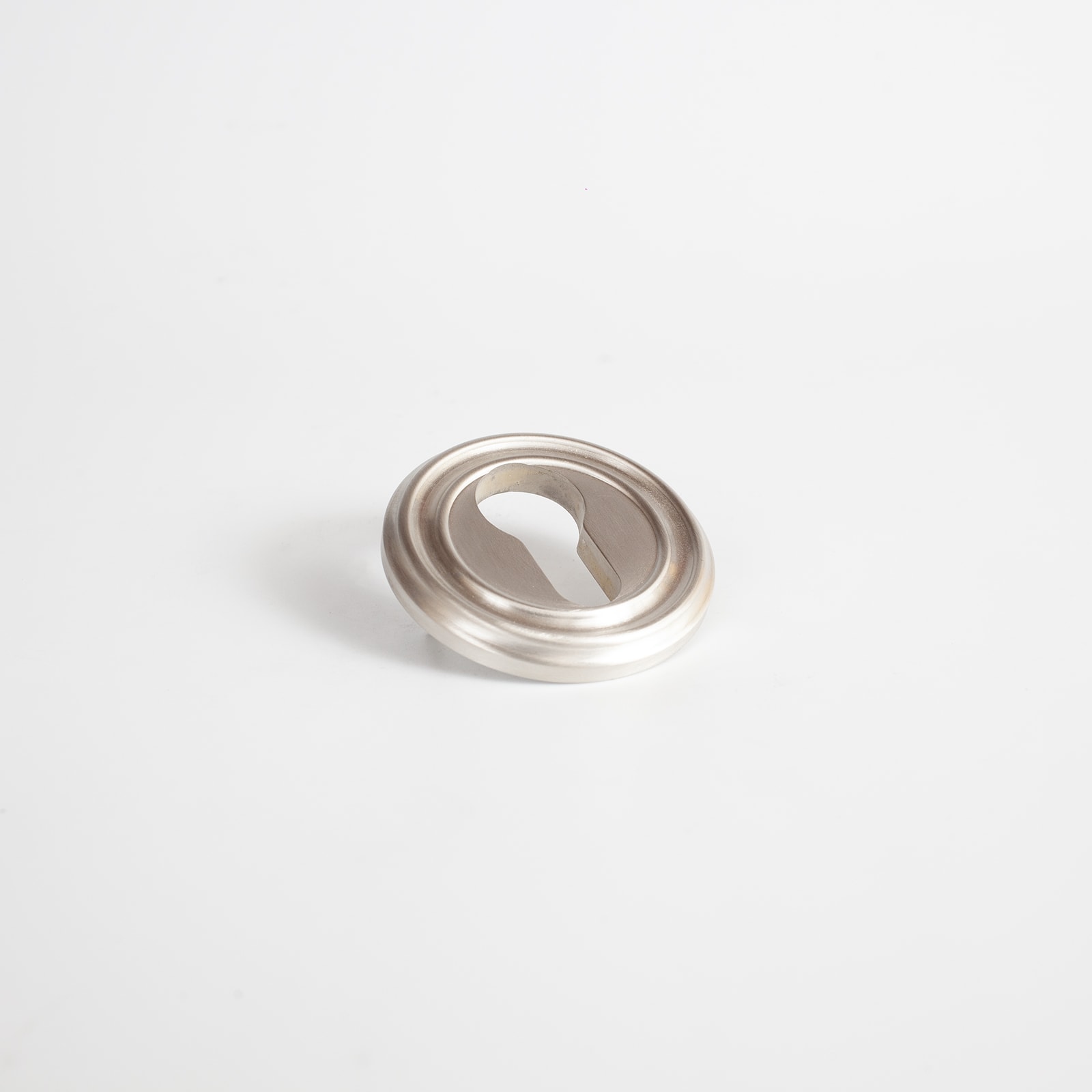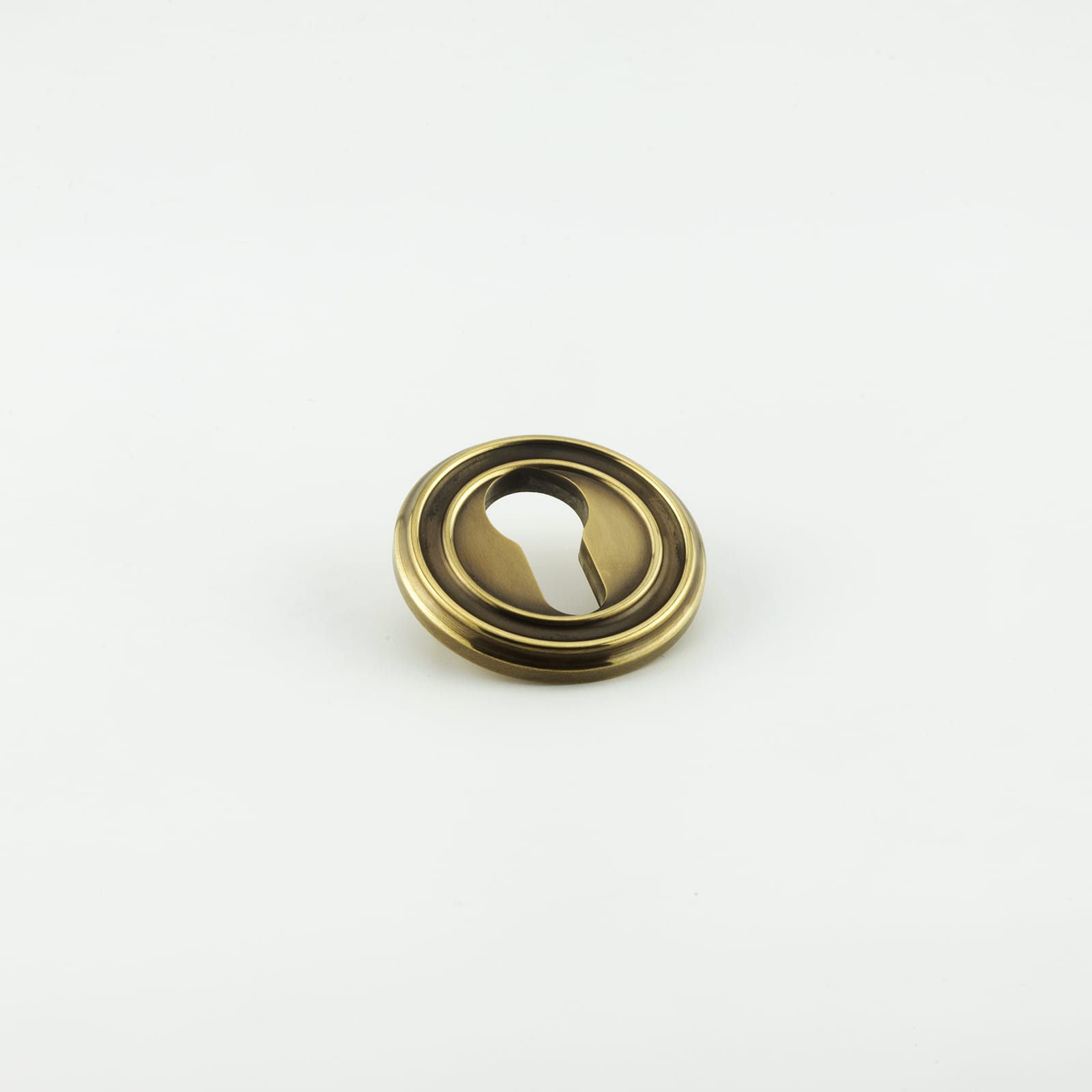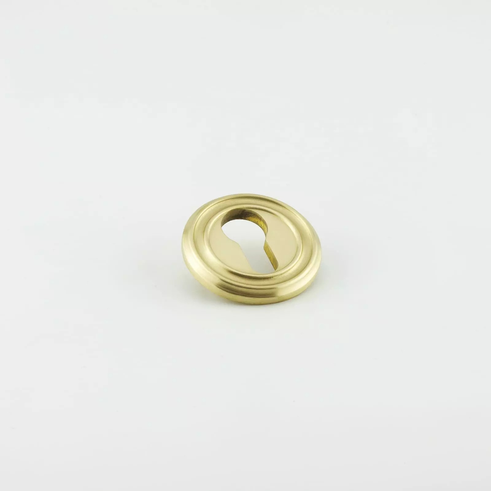 Description Euro escutcheon with large curved edge detail, Pin fixed, Solid brass material