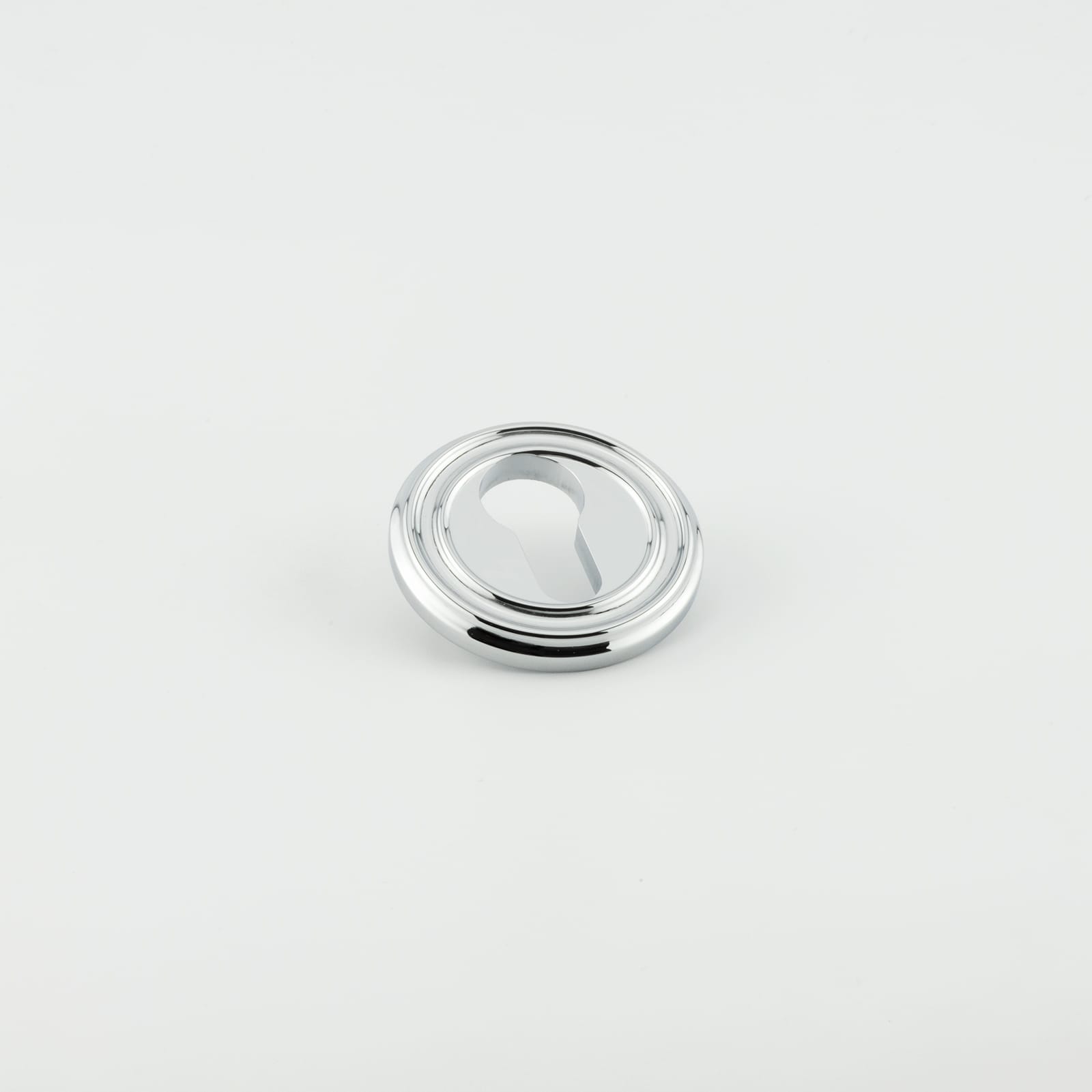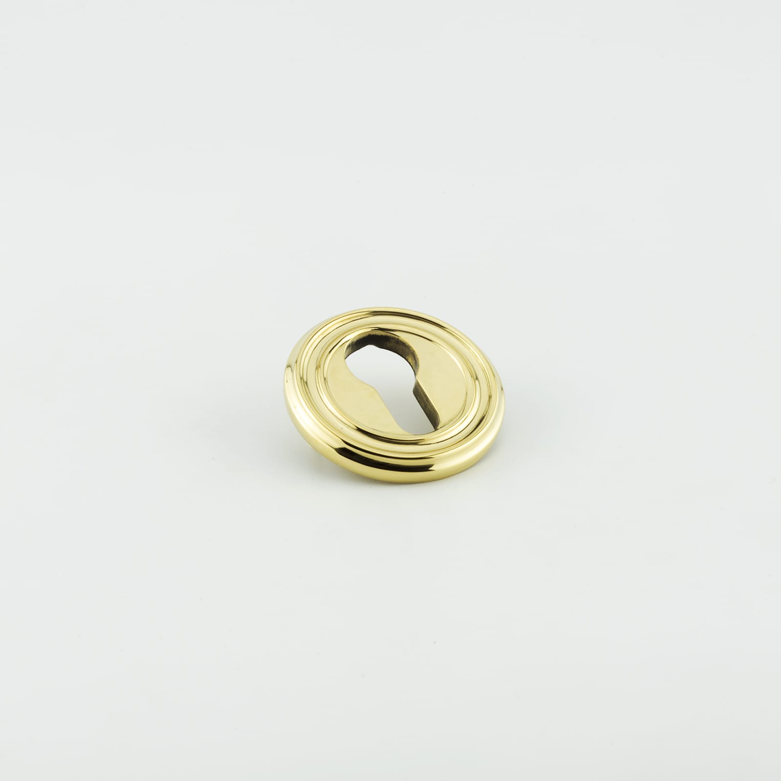Description Euro escutcheon with large curved edge detail, Pin fixed, Solid brass material