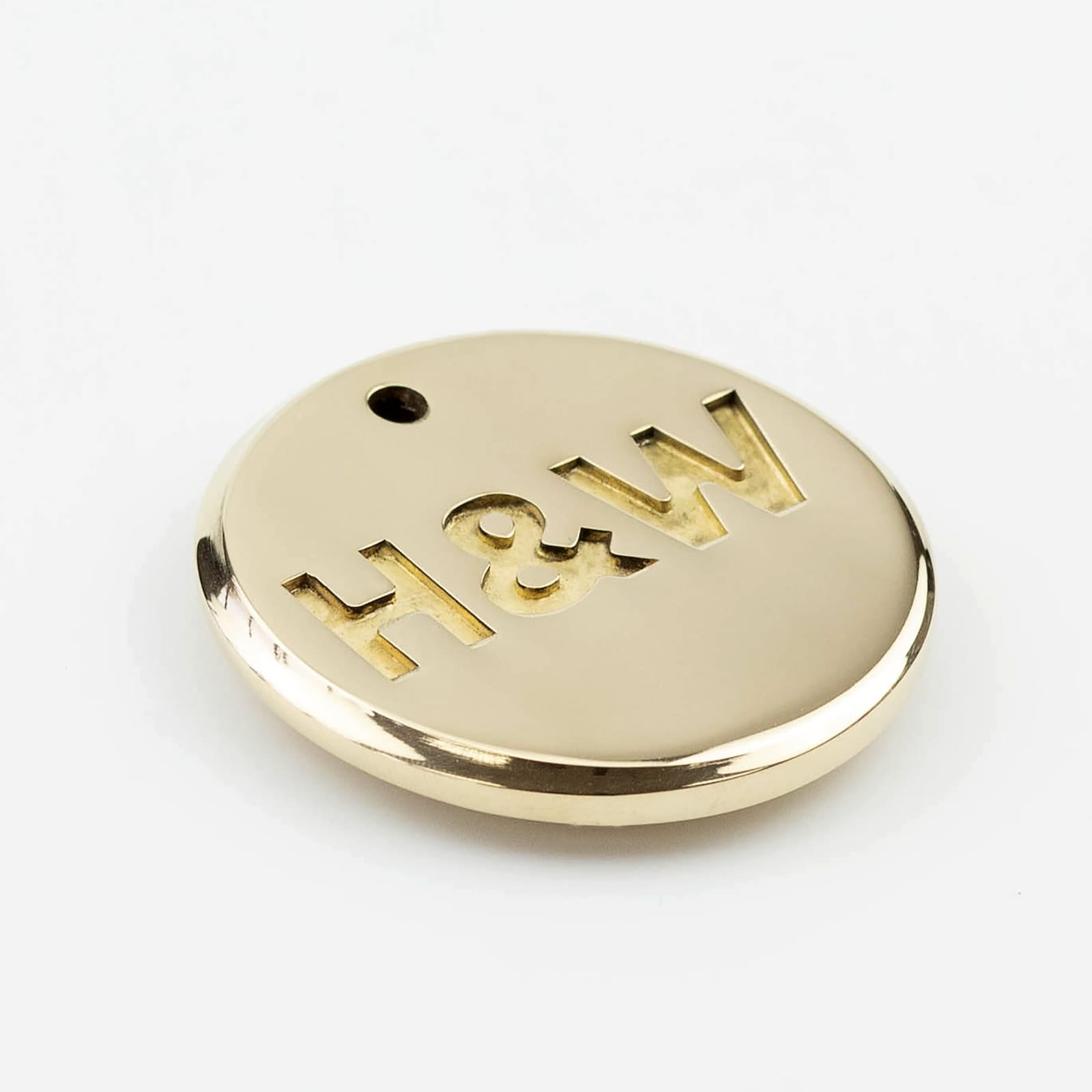 Description Hard & Ware finish sample disc polished brass un lacquered