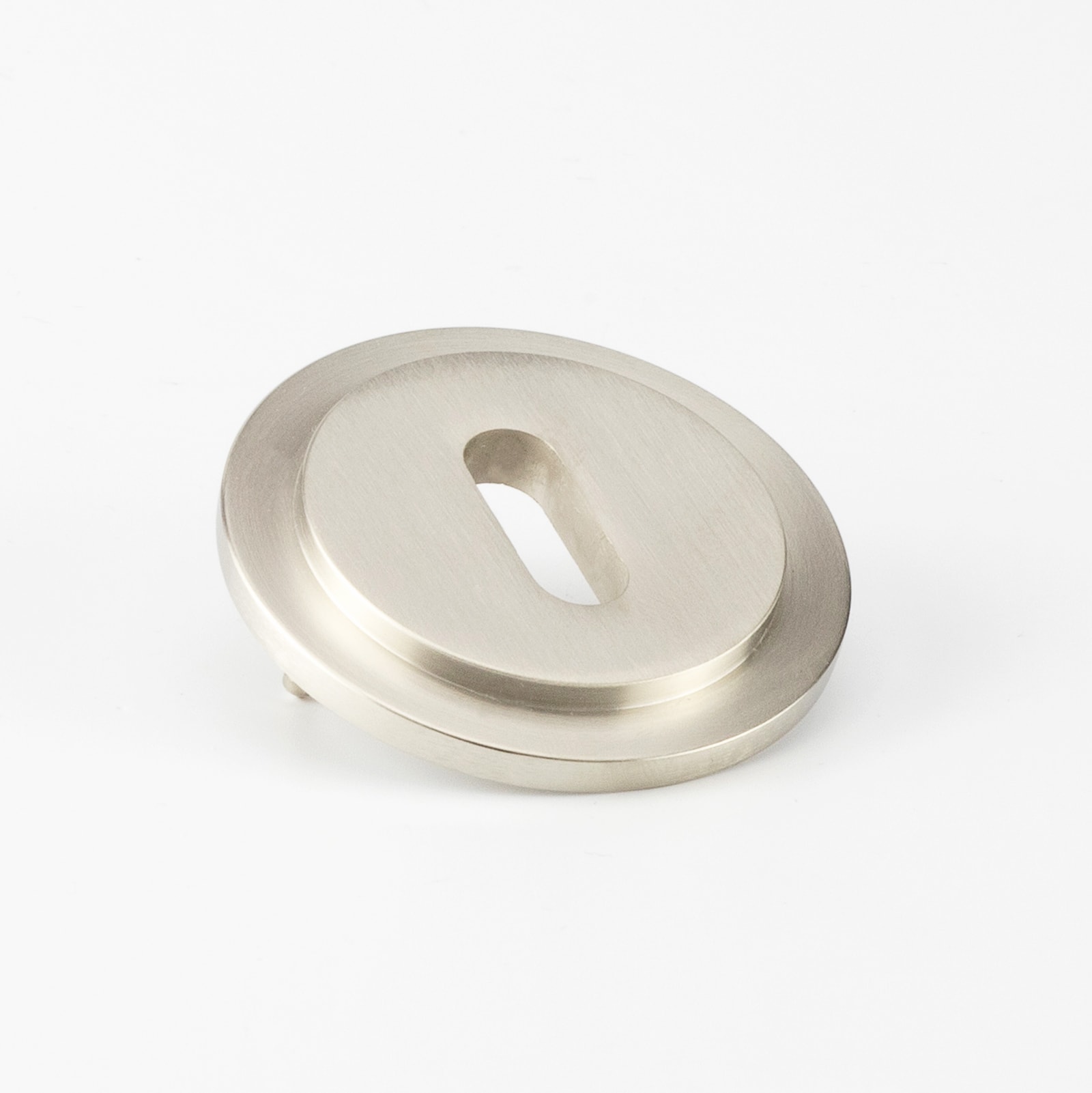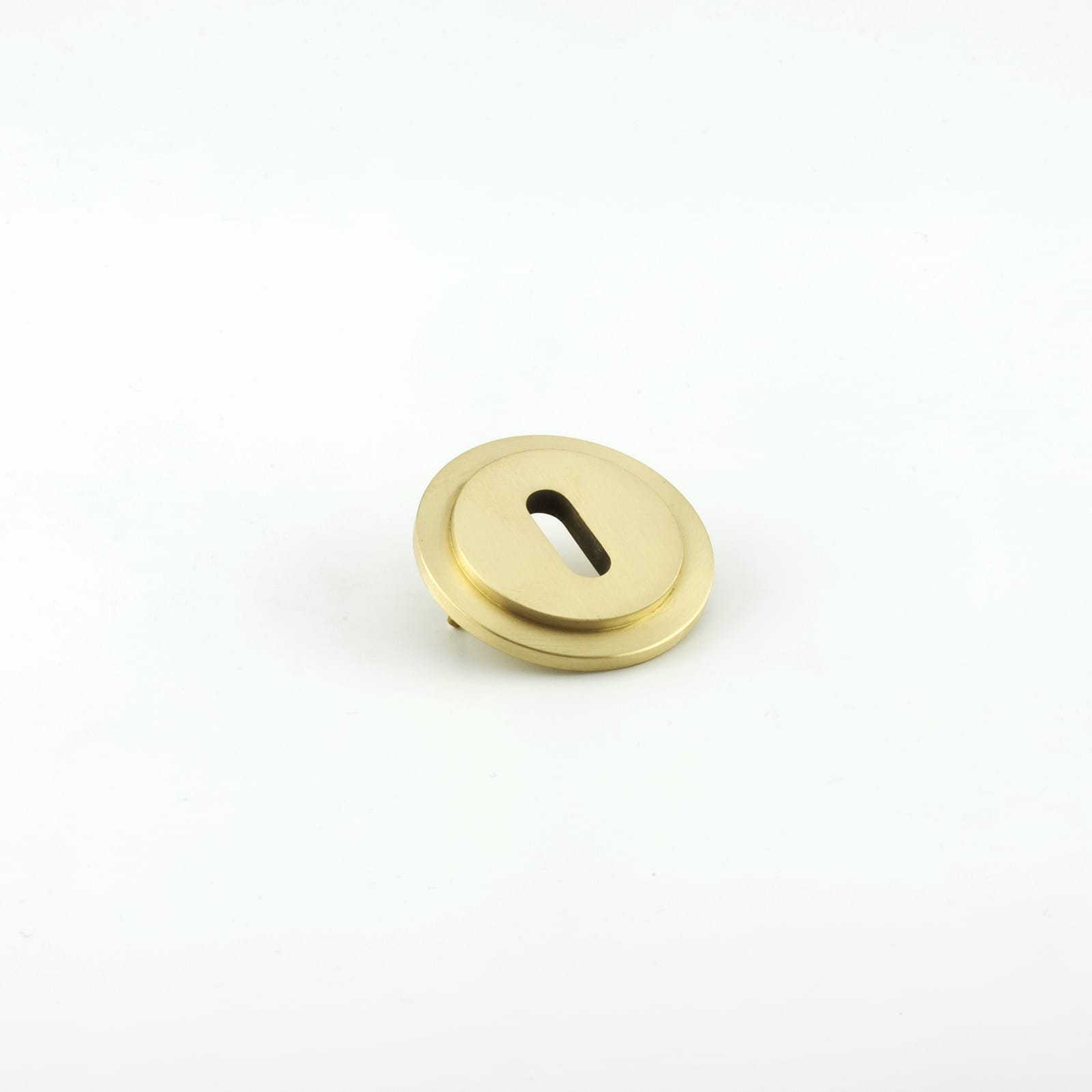Description Standard escutcheon with a larged stepped face detail, Pin fixed, Solid brass material