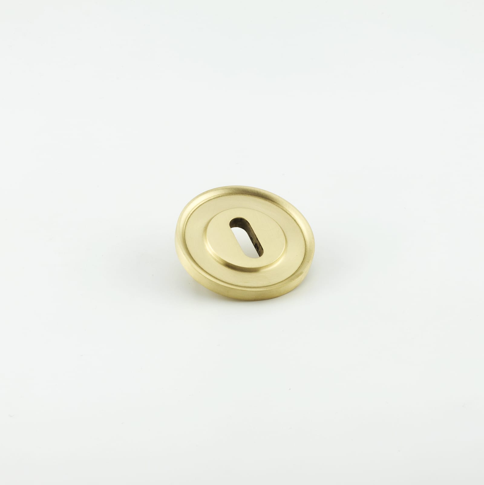 Description Standard escutcheon with a large stepped face with a curved lip detail, Pin fixed, Solid brass material