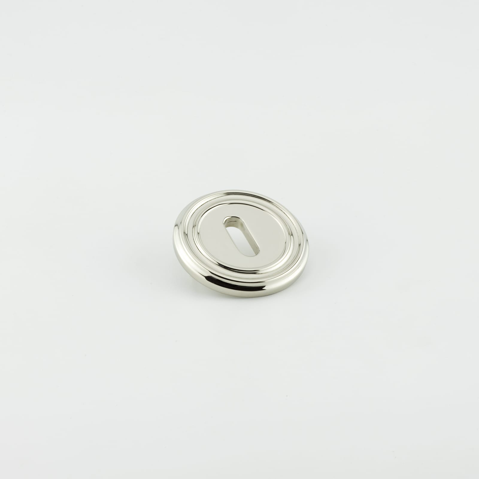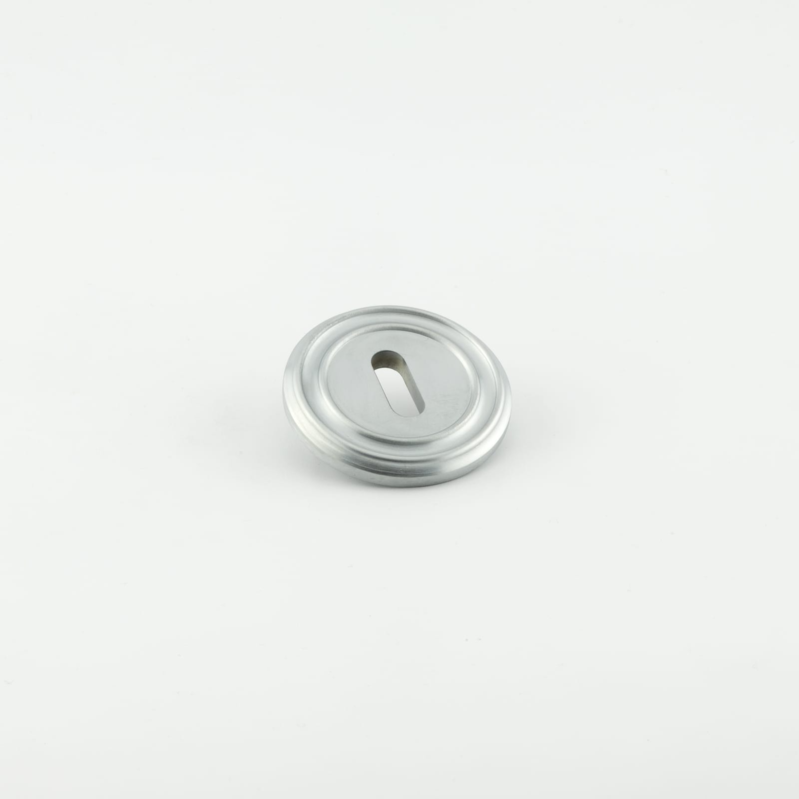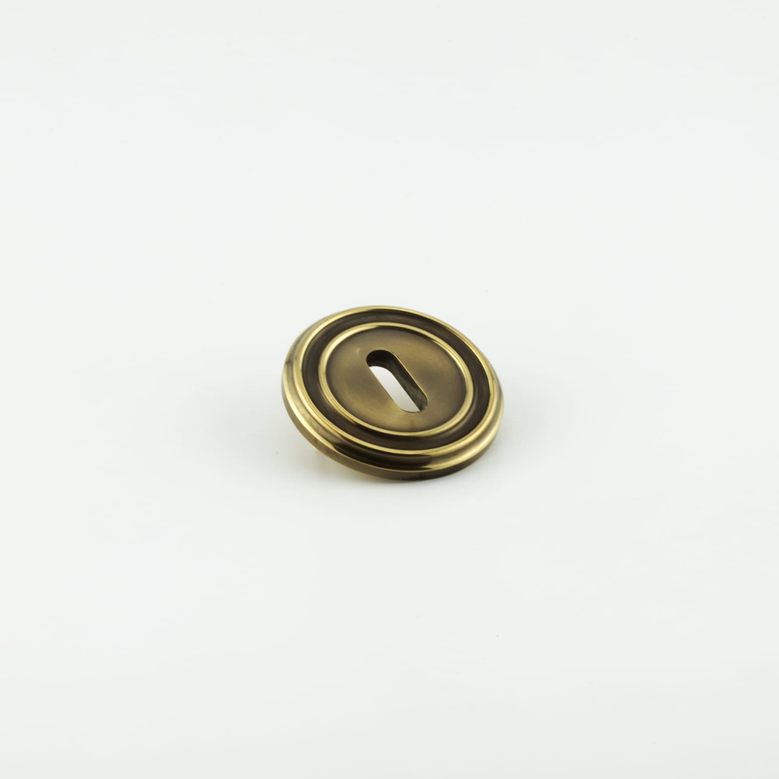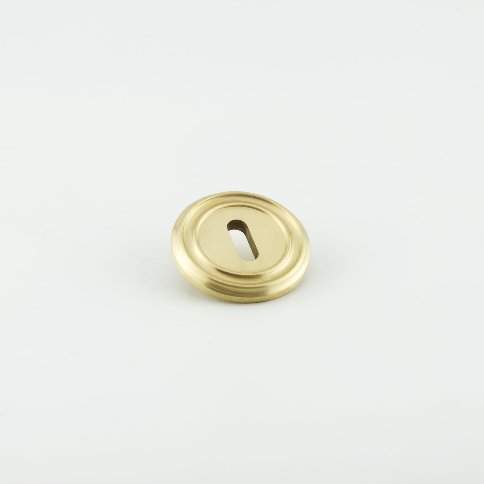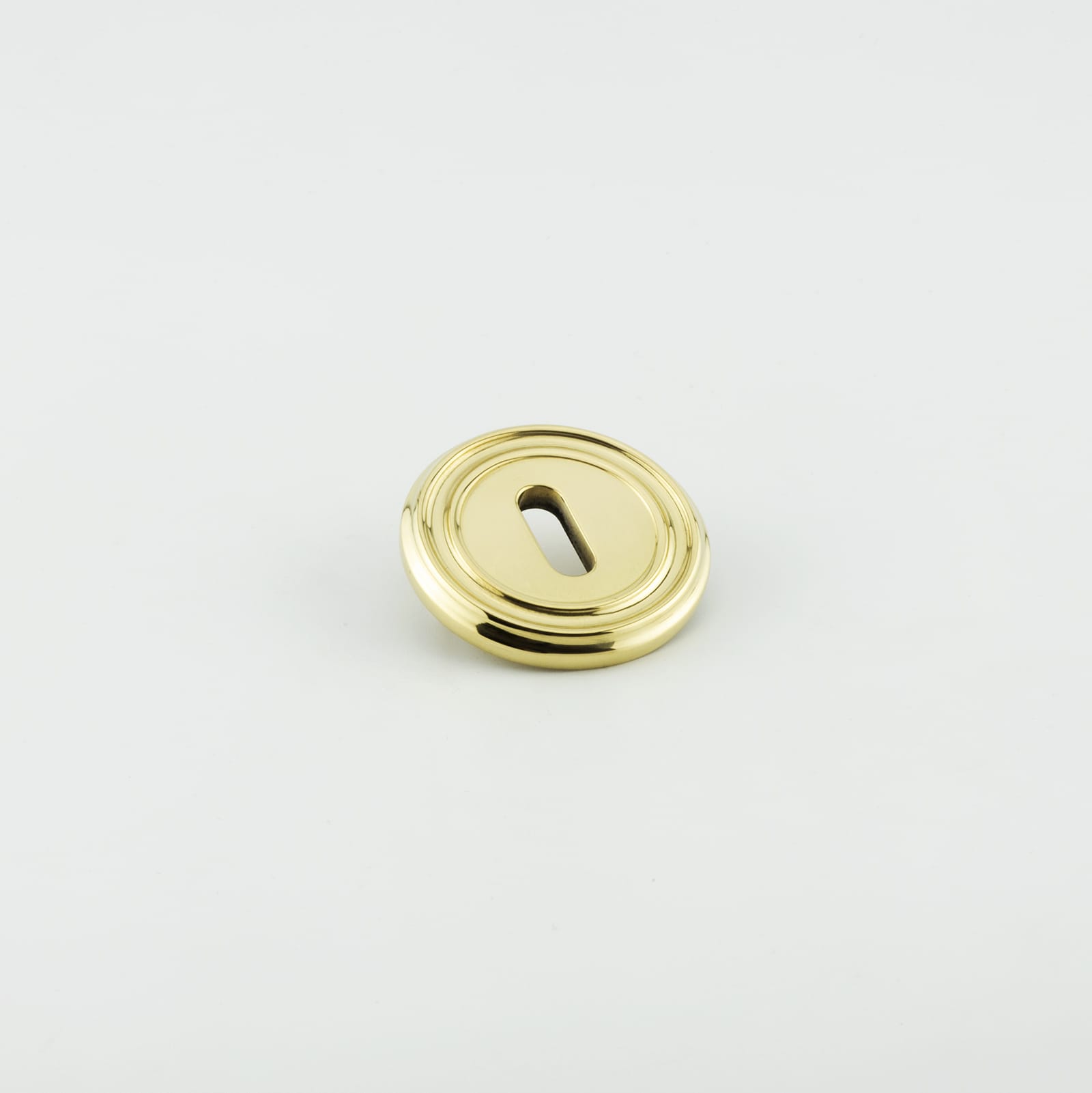 Description Standard escutcheon with large curved edge detail, Pin fixed, Solid brass material