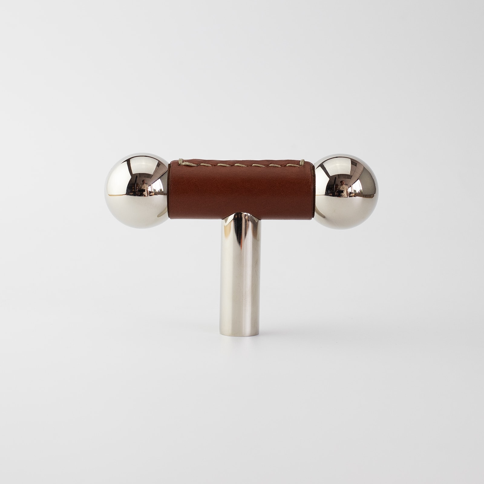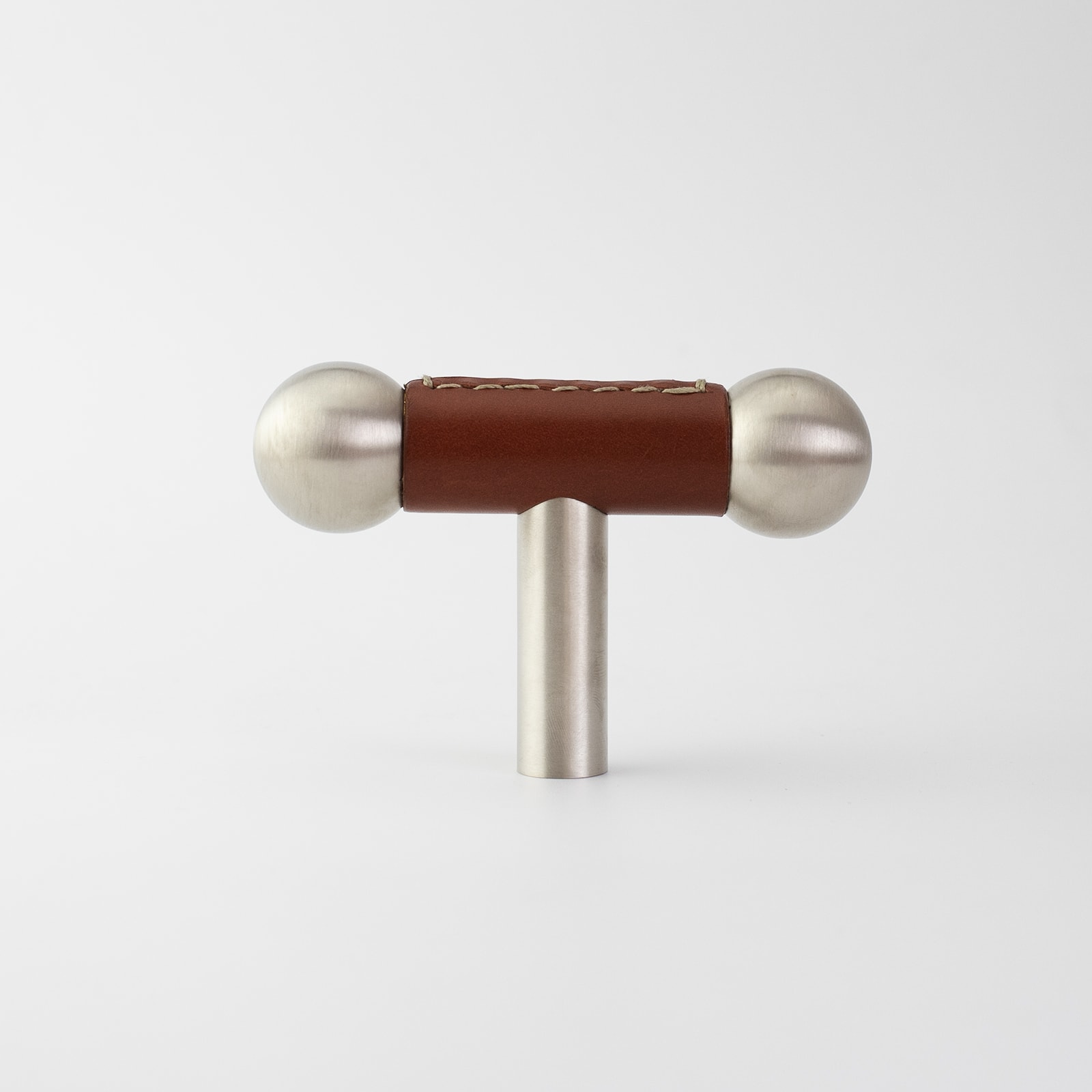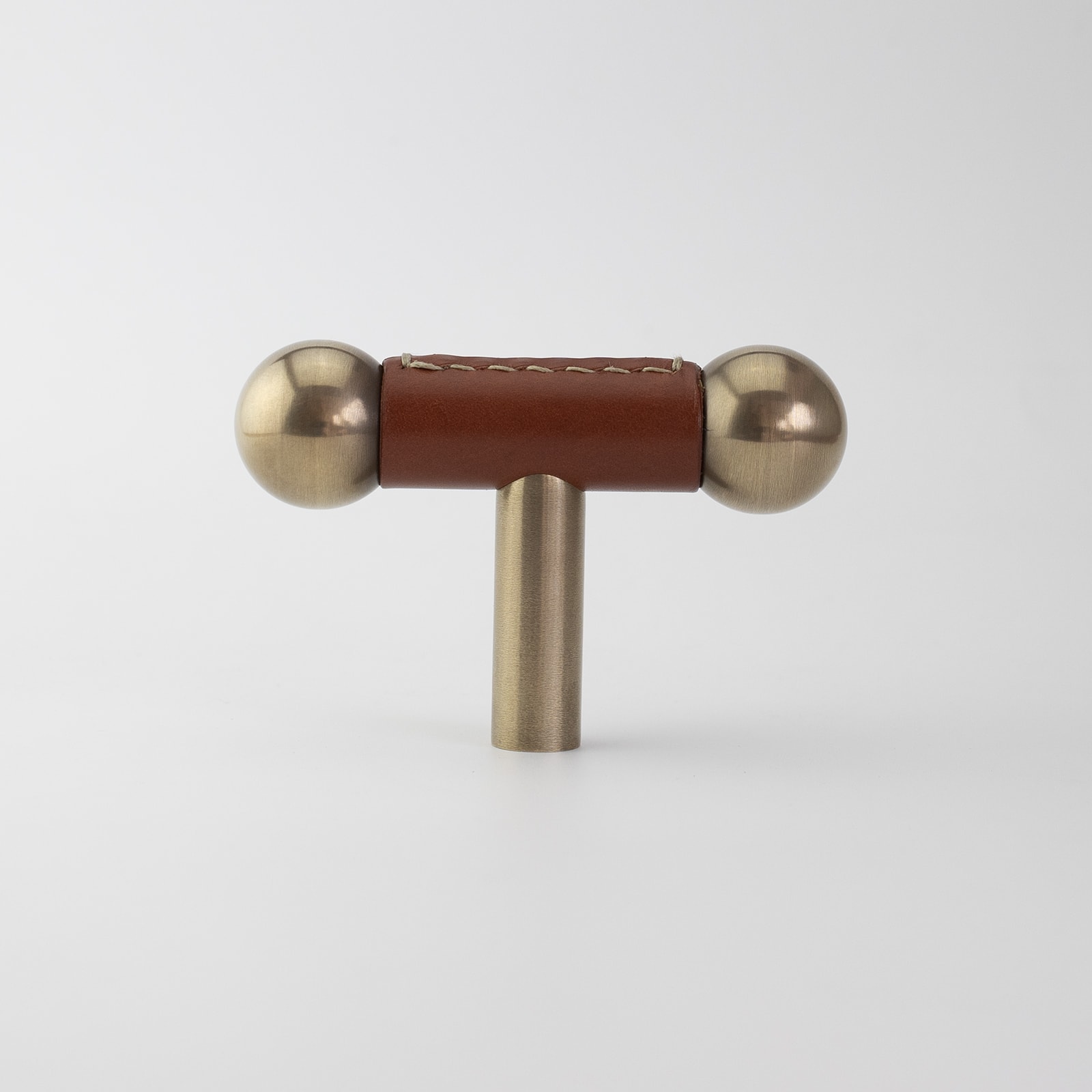 Description T-Bar Pull With Hand Stitched Leather Bar And Ball Detail, Solid Brass Material, M10 Bolt
