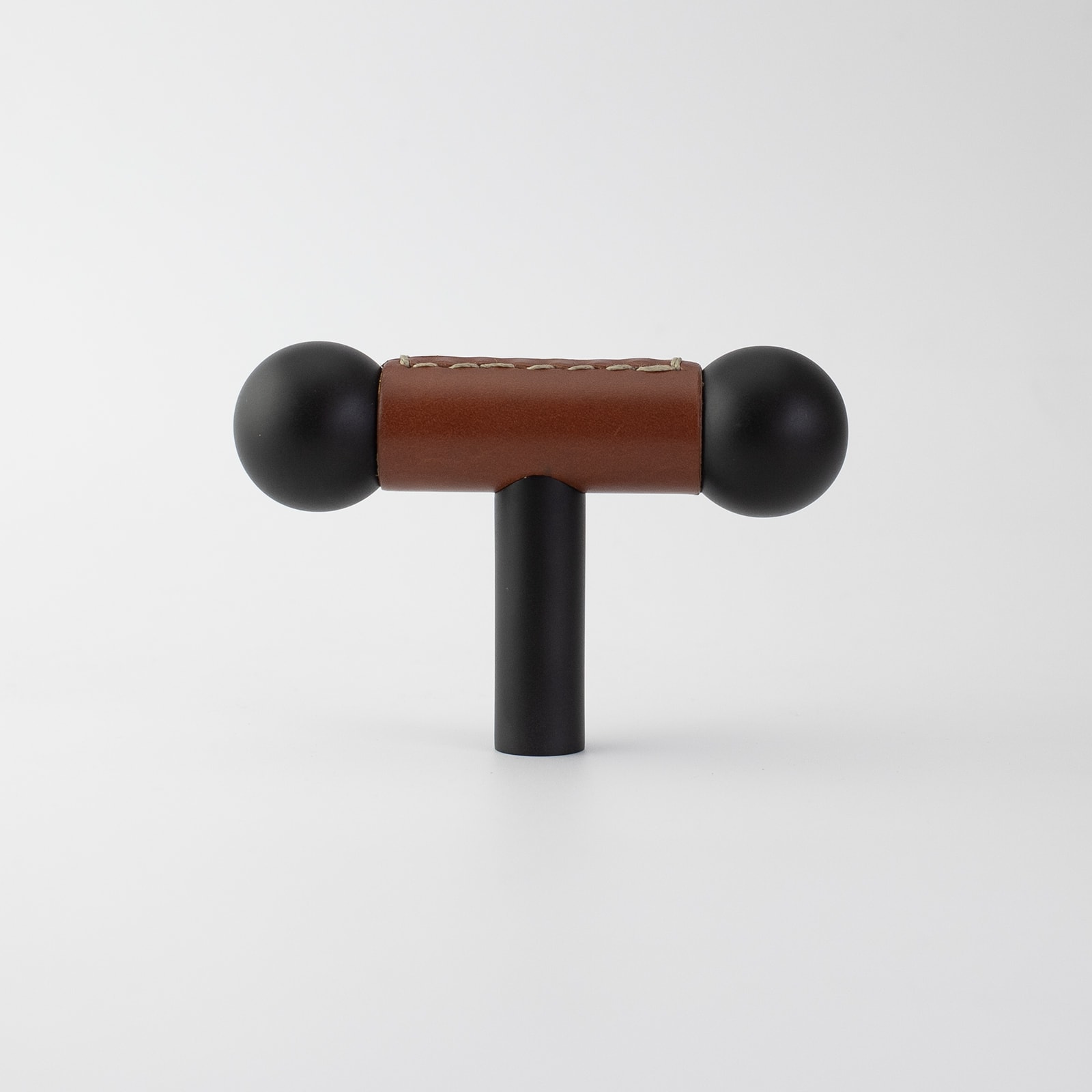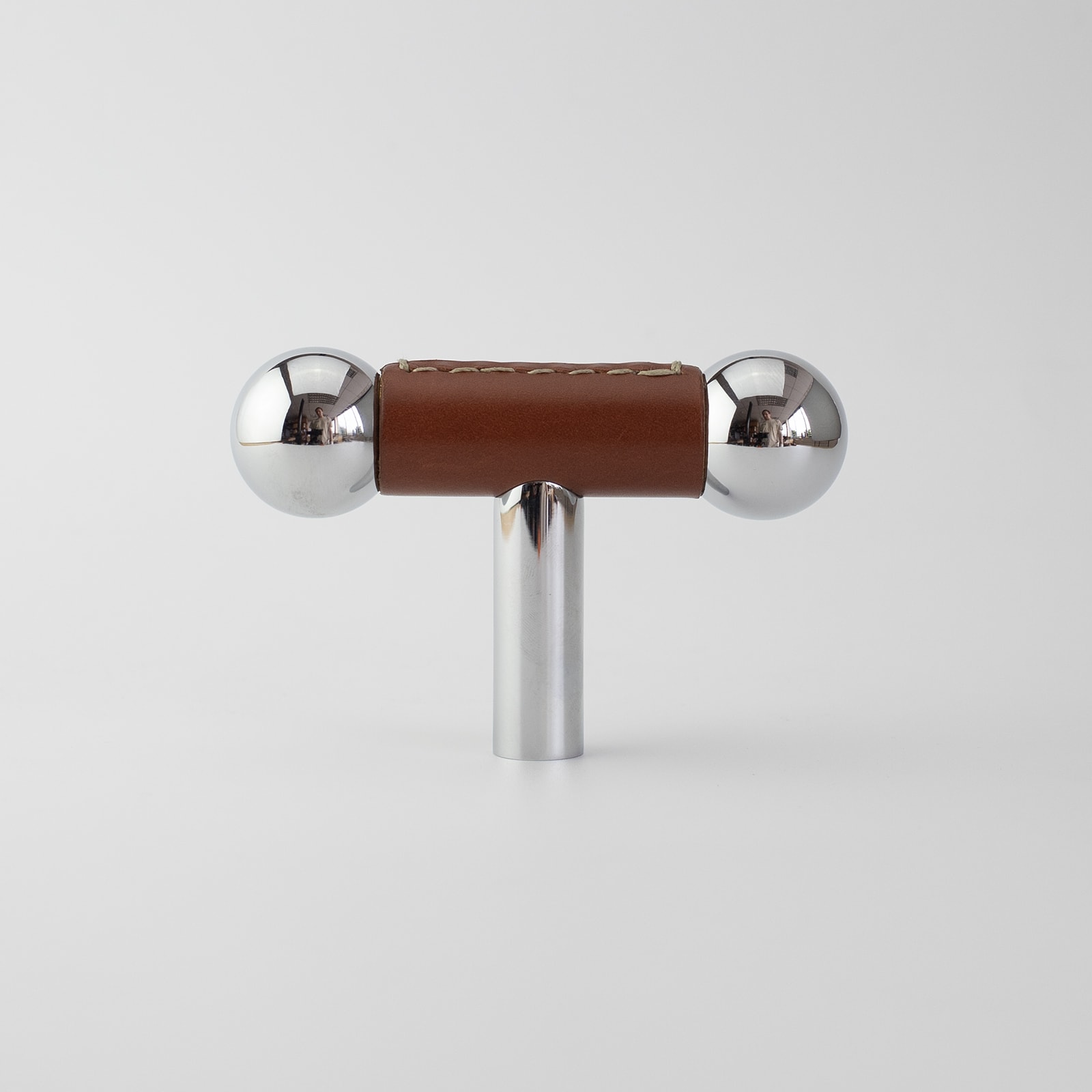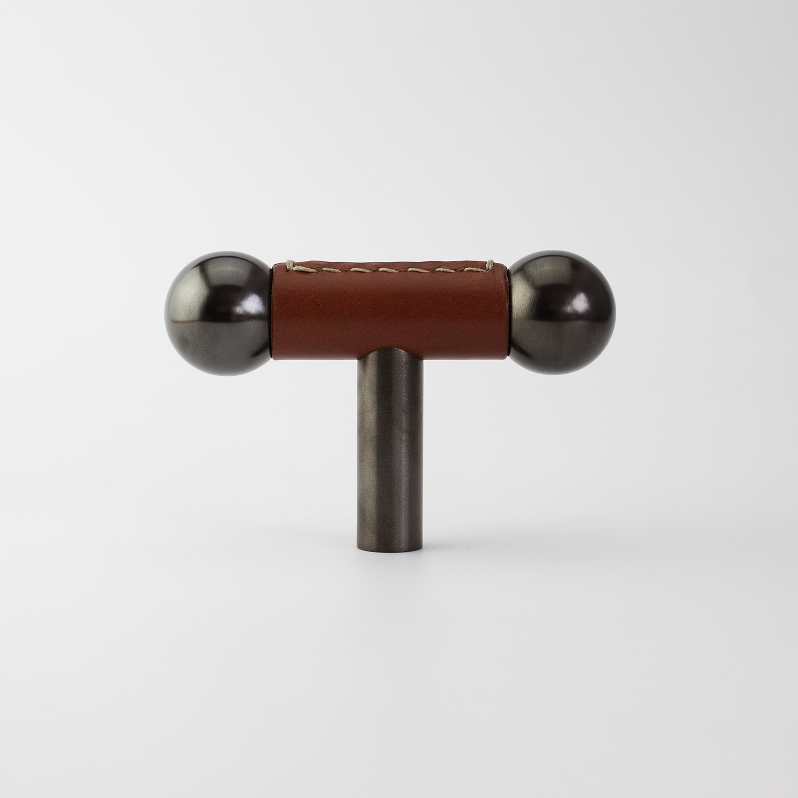 Description T-Bar Pull With Hand Stitched Leather Bar And Ball Detail, Solid Brass Material, M10 Bolt