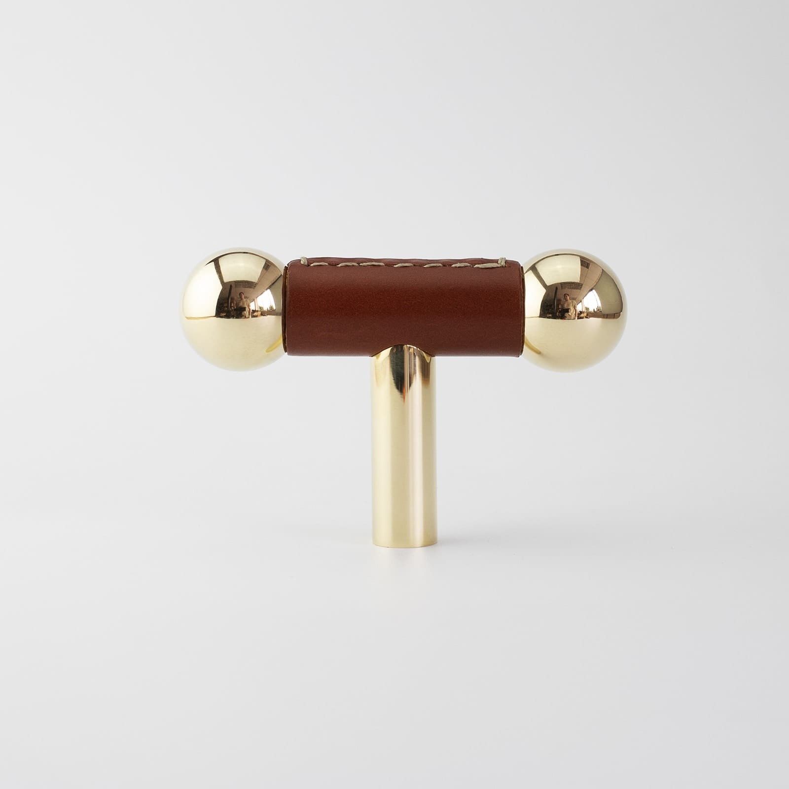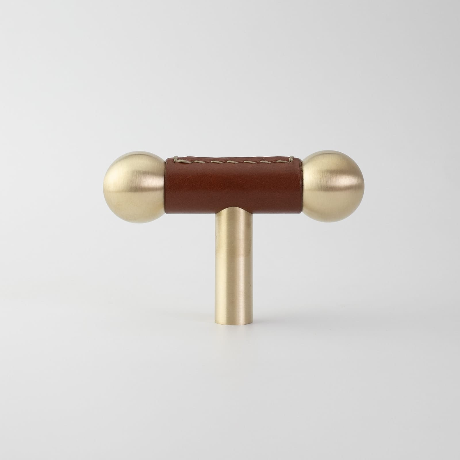 Description T-Bar Pull With Hand Stitched Leather Bar And Ball Detail, Solid Brass Material, M10 Bolt