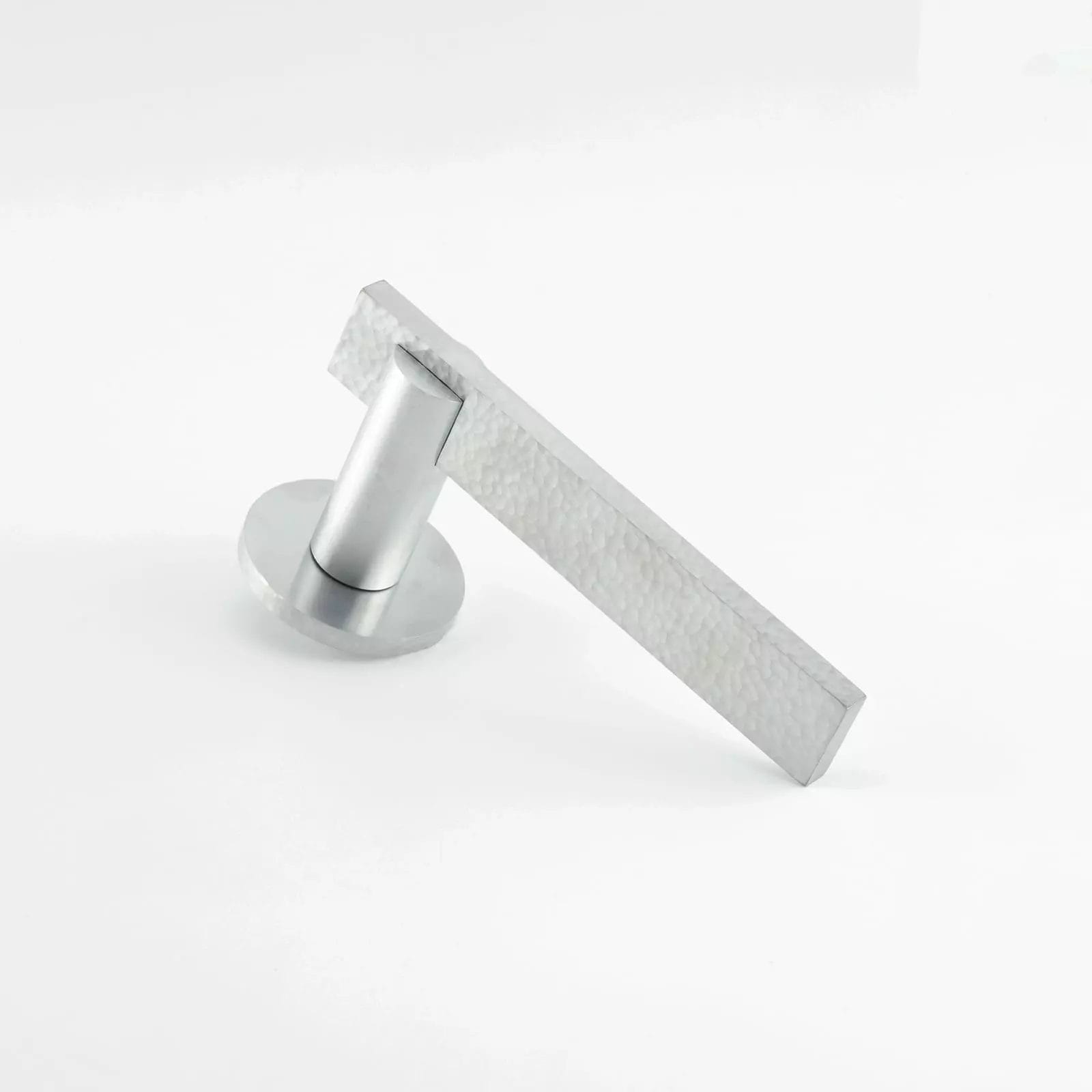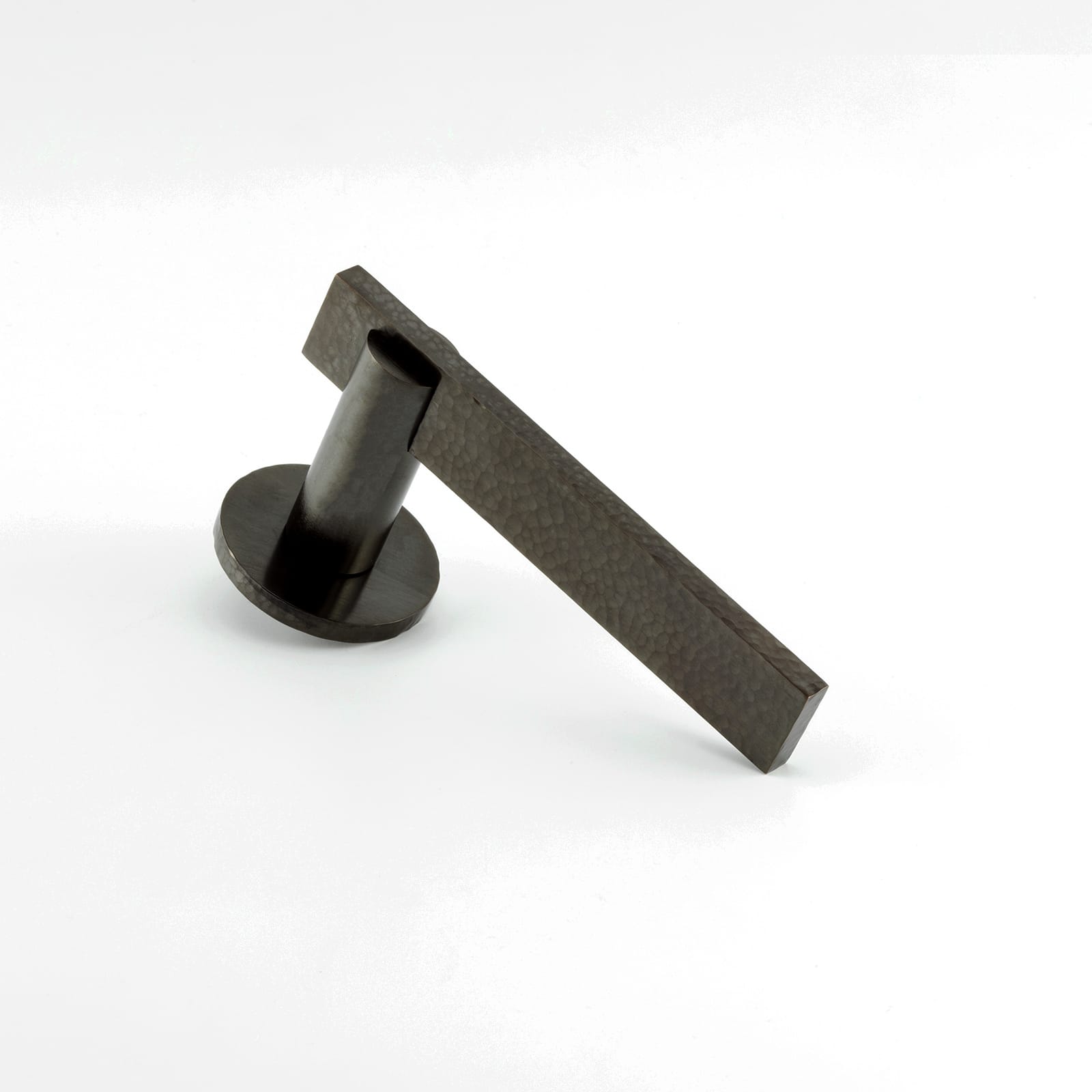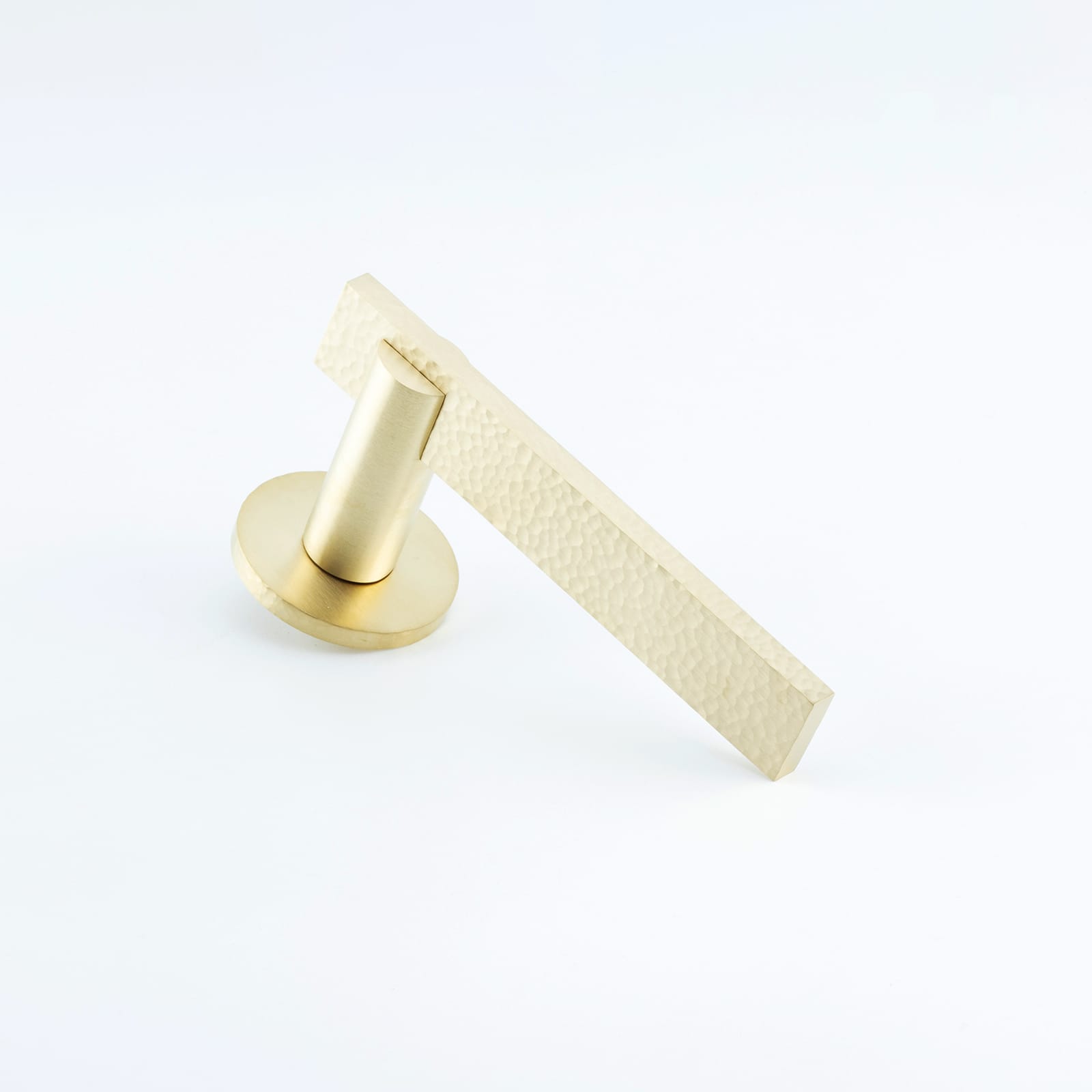 T-Bar Themed Lever on Rose with Smooth Stem and Hammered Flat Handle & Rose Edge, Solid Brass Material