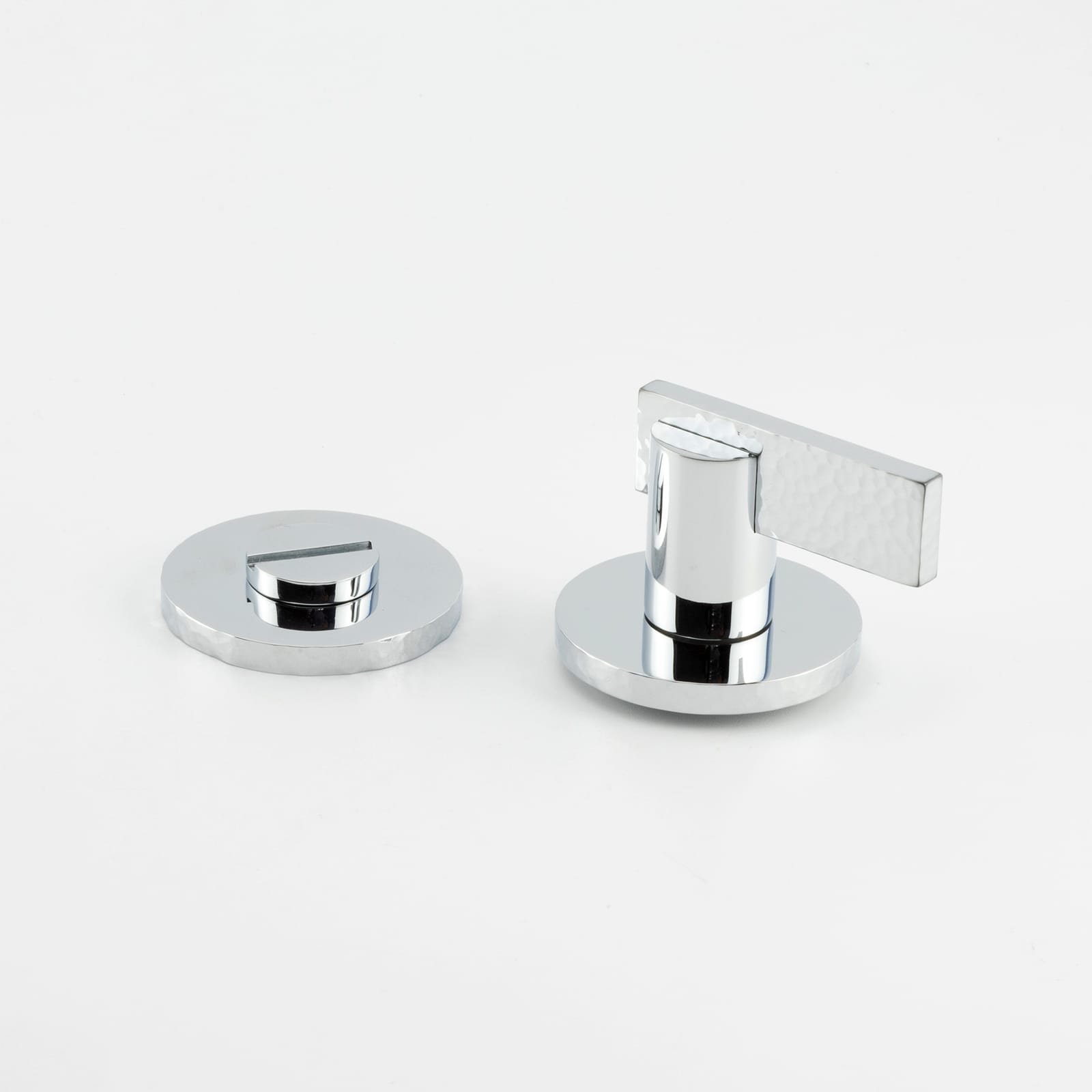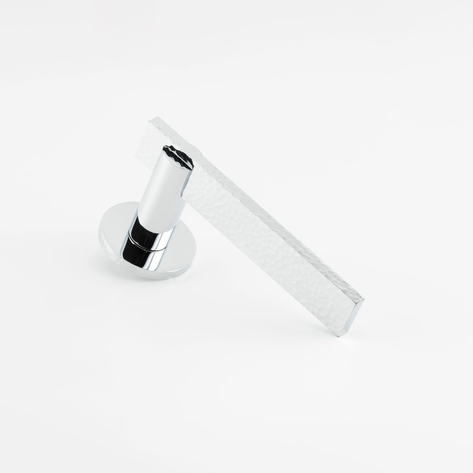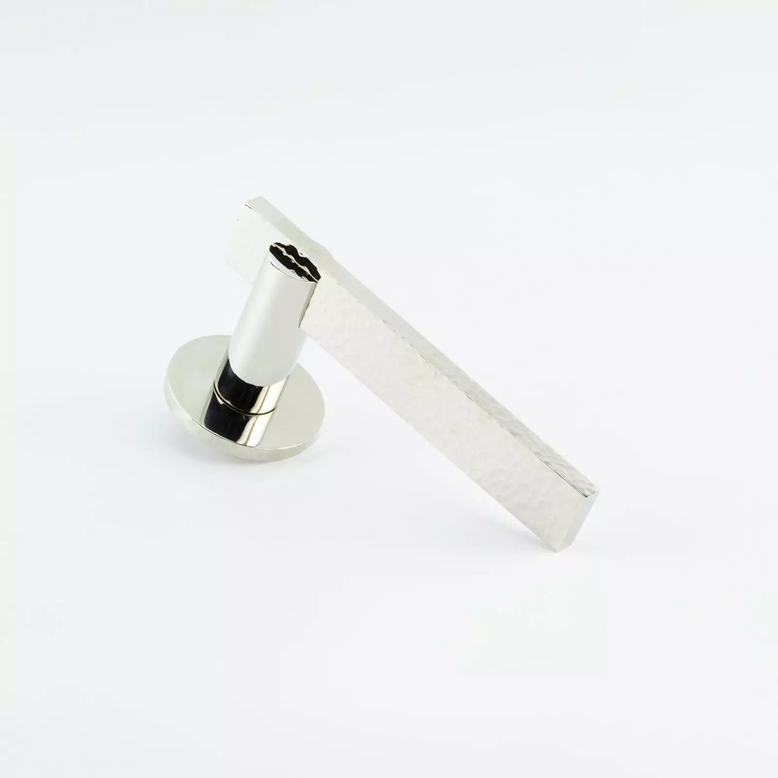T-Bar Themed Lever on Rose with Smooth Stem and Hammered Flat Handle & Rose Edge, Solid Brass Material