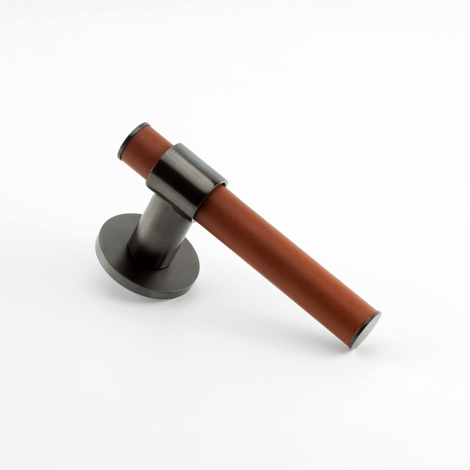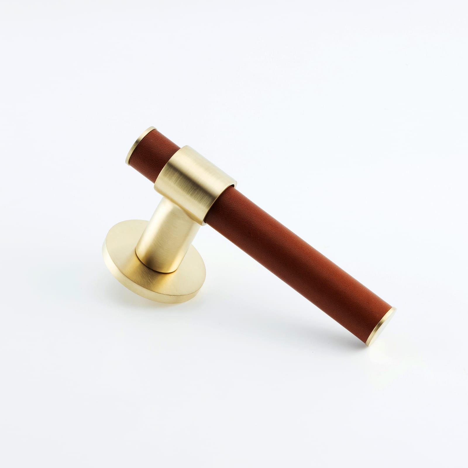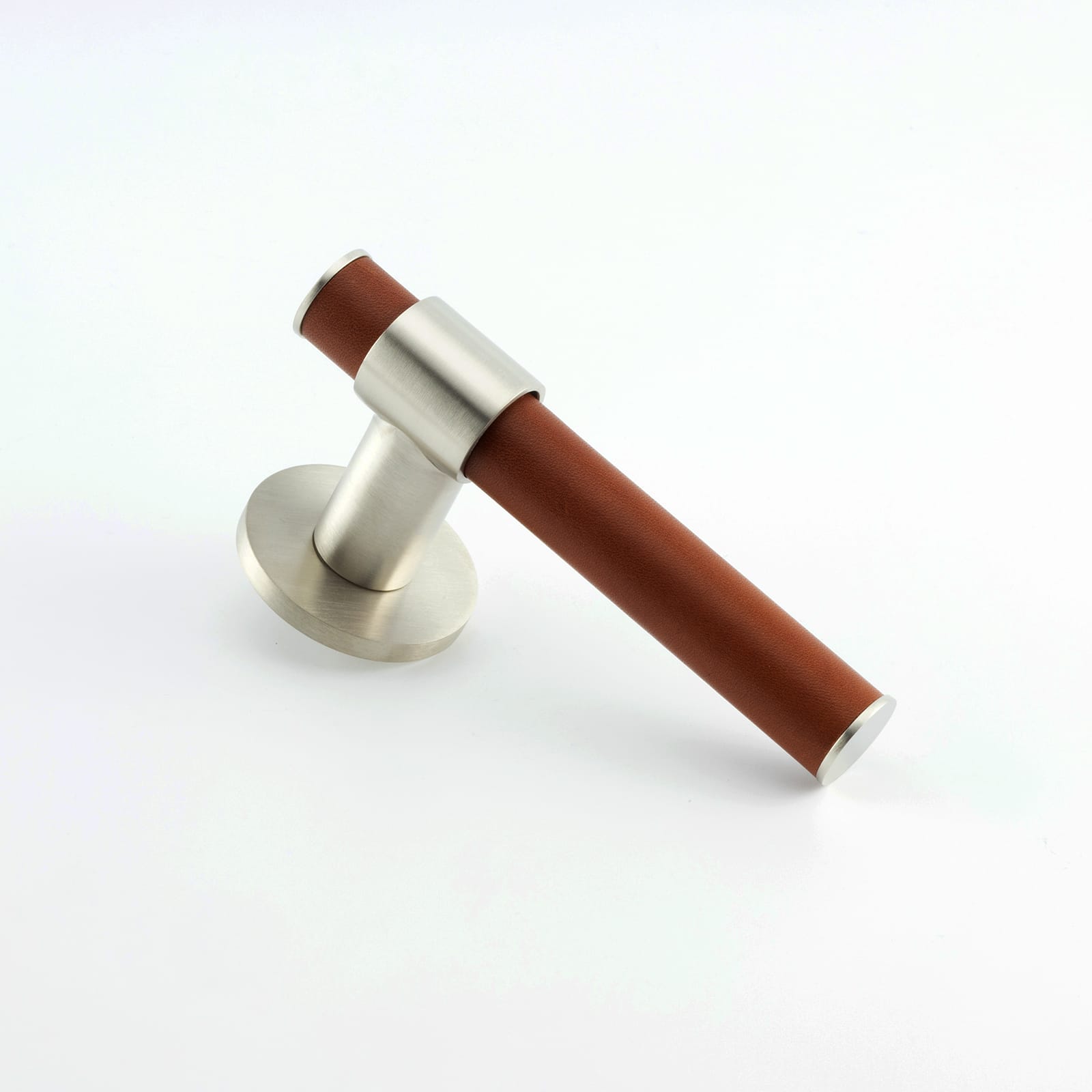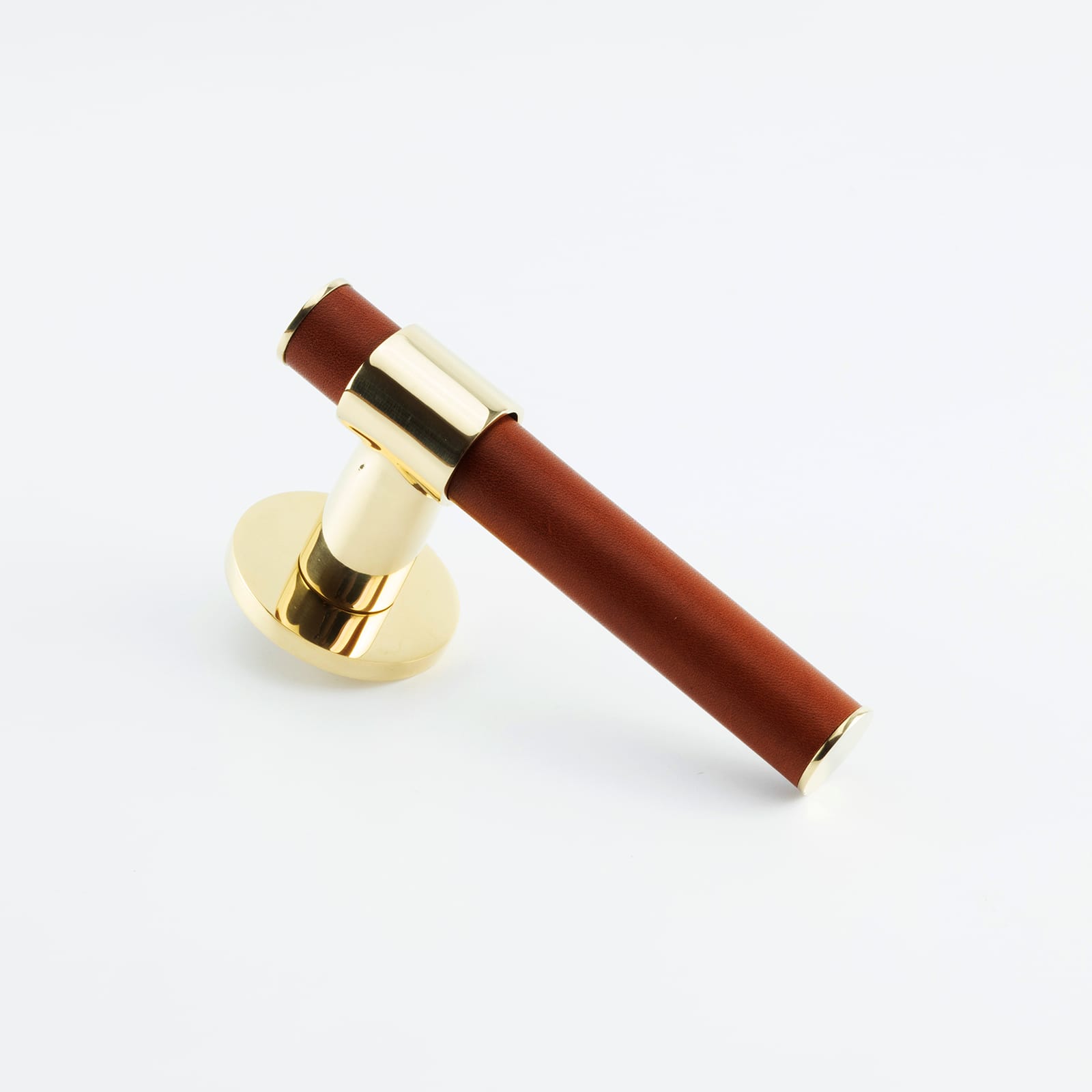 T-Bar Themed Lever on Rose with Hand Stitched Leather Handle Bar Detail, Solid Brass Material