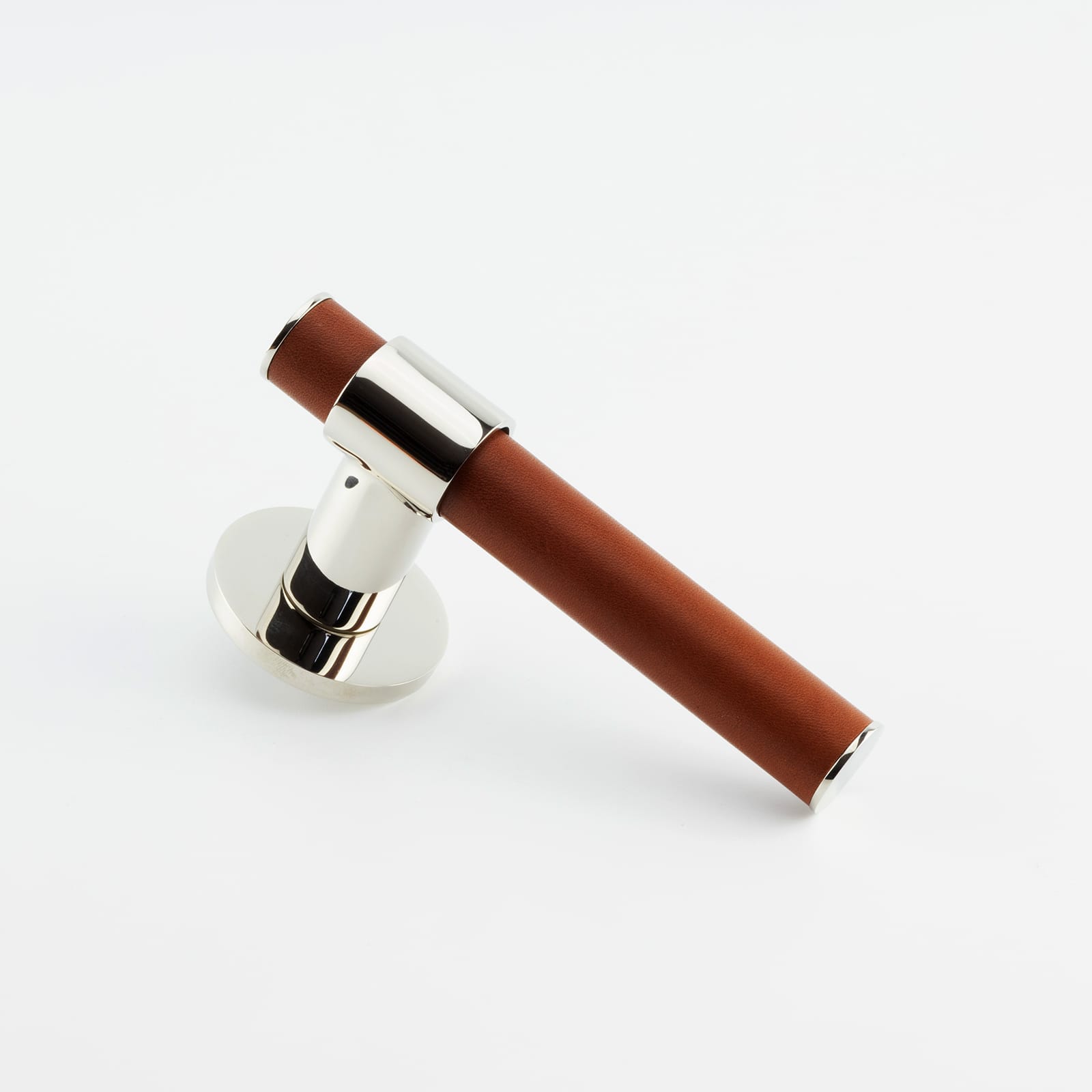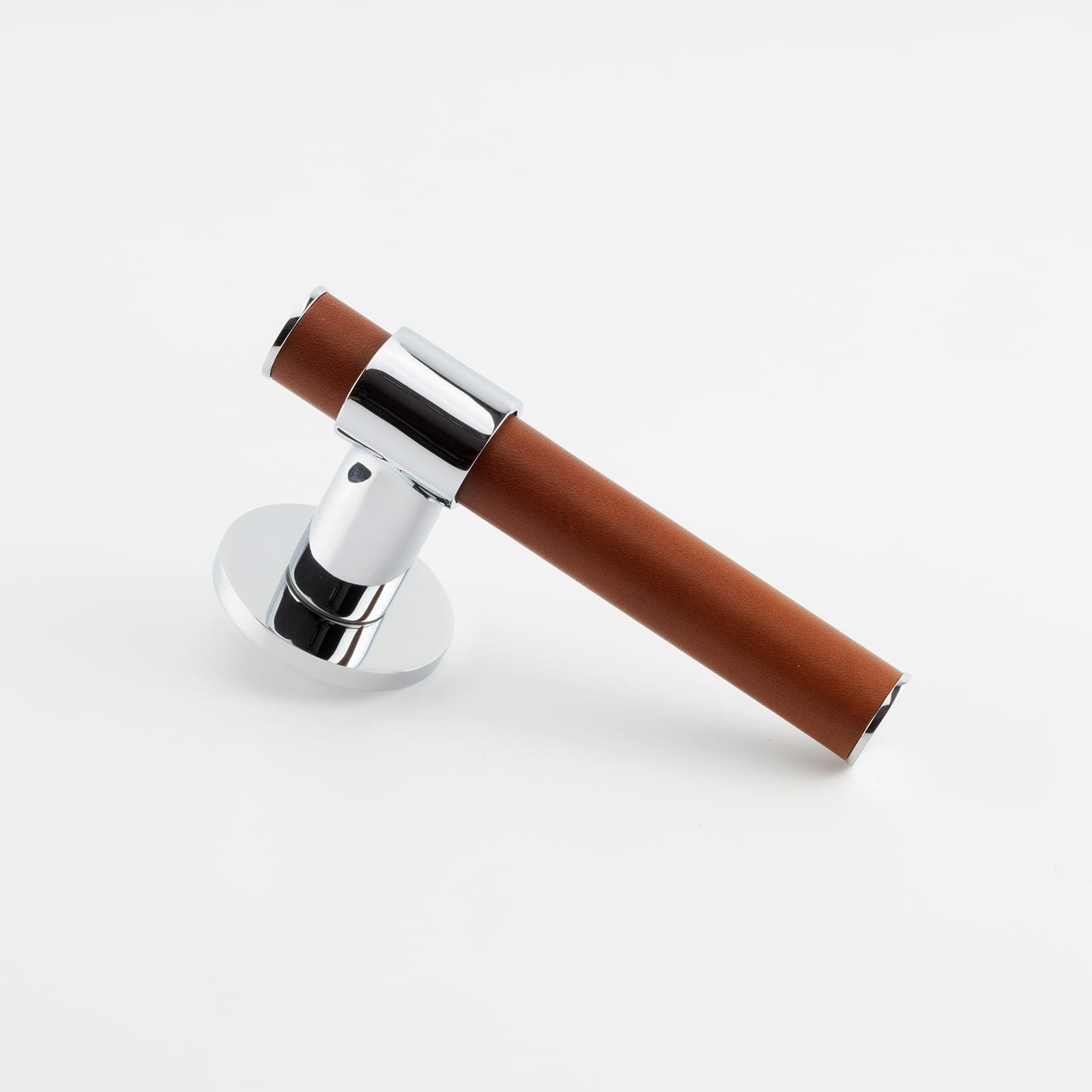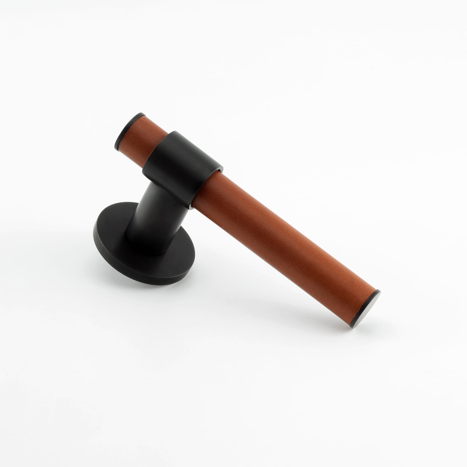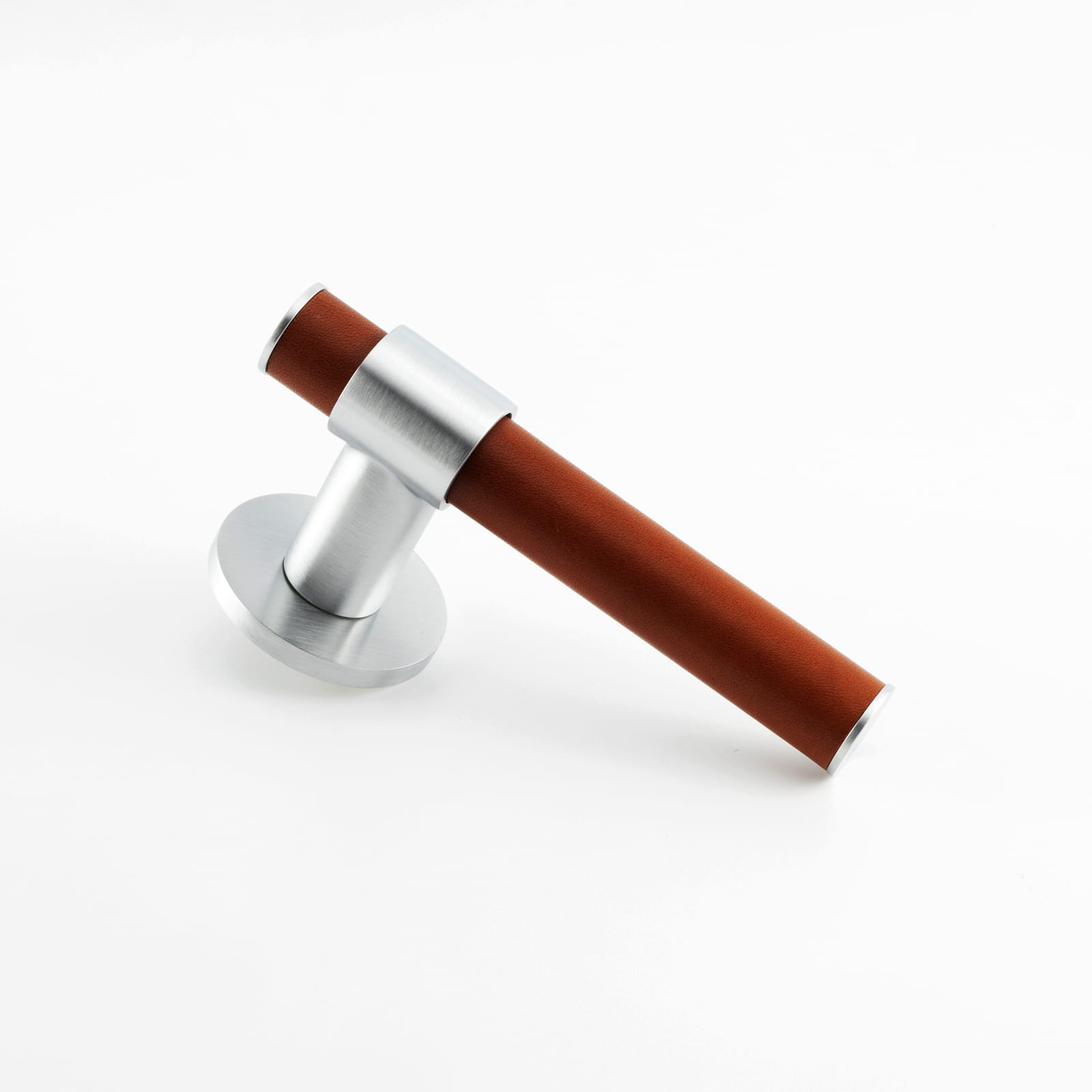 T-Bar Themed Lever on Rose with Hand Stitched Leather Handle Bar Detail, Solid Brass Material